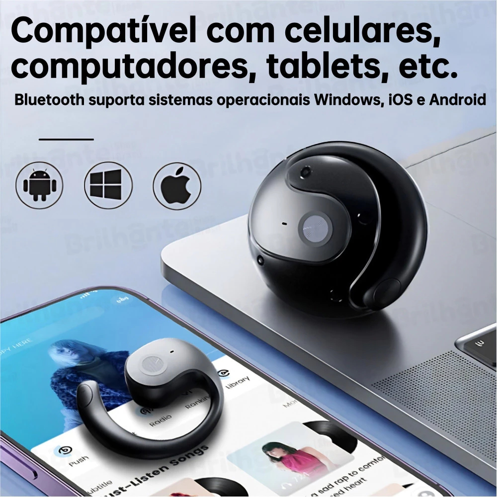 Fone de ouvido Sem fio Bluetooth Suporte Orelha Pendurada Anti-queda TWS Ergonômico