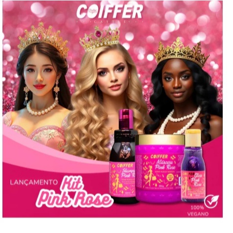 Máscara Pink Rose Coiffer 500g Controle dos cachos, Cabelos Rebeldes, + Sedosidade e Vitalidade.