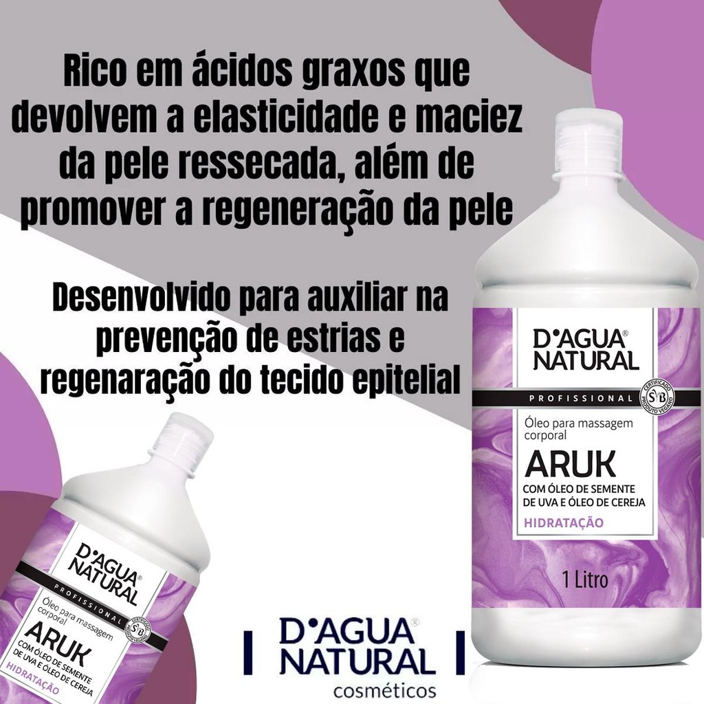 Óleo de Massagem Corporal Dagua Natural Aruk Semente de Uva e Cereja 1L Hidratação
