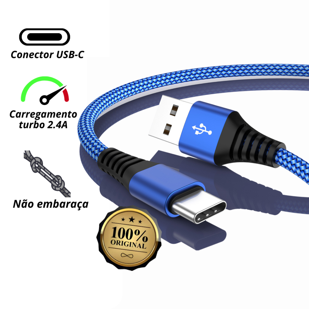 Cabo de Carregador Usb-c Antiquebra 2 Metros Tipo C