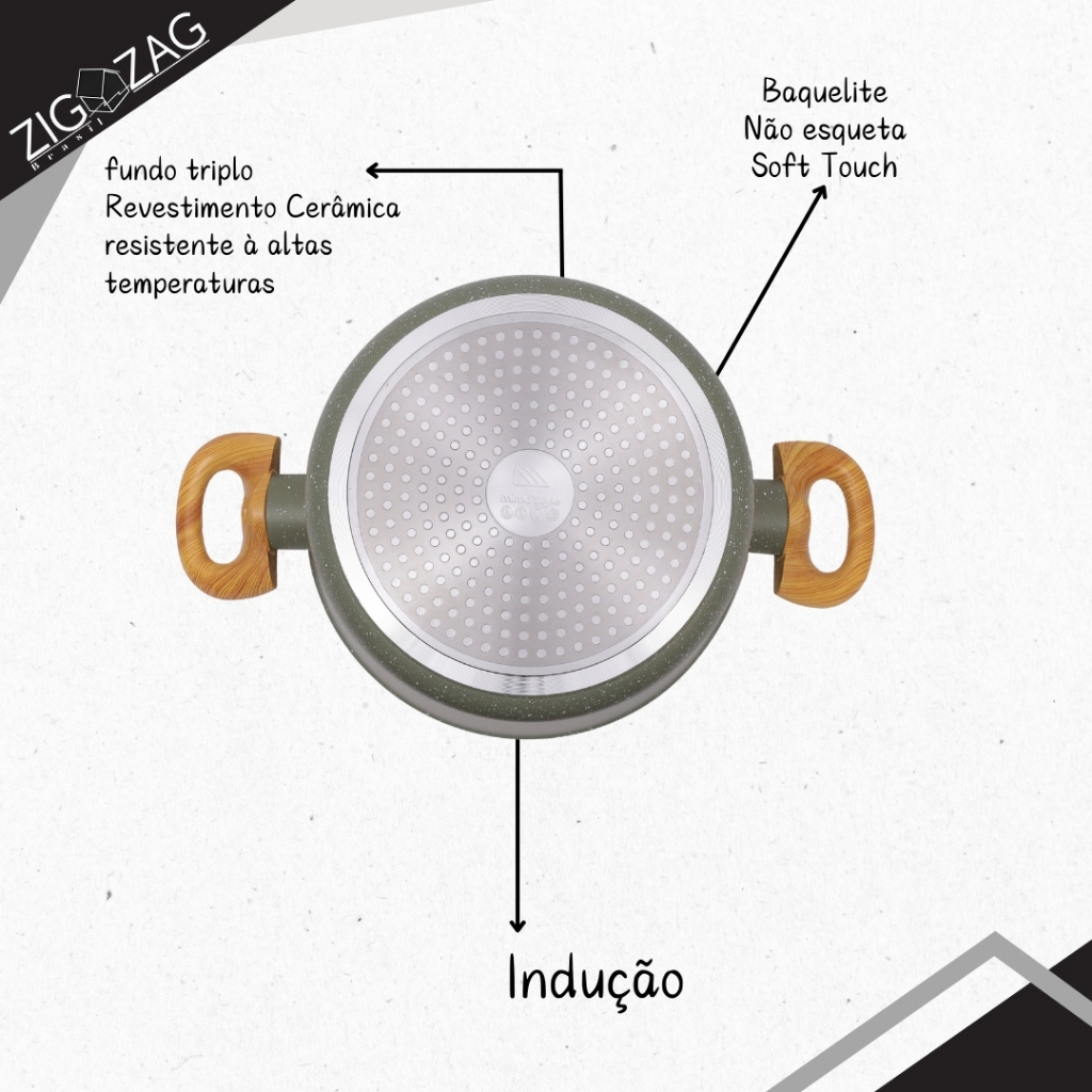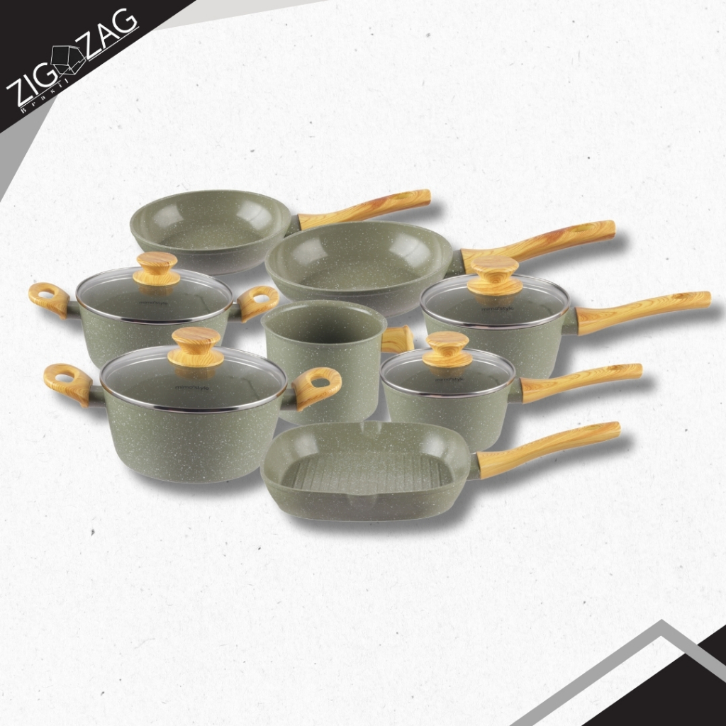 Kit 8 Peças Style Cook Antiaderente, Revestimento Cerâmico | Pra Fogões Indução, Vitrocerâmico e Gás, Quartzo, esmeralda
