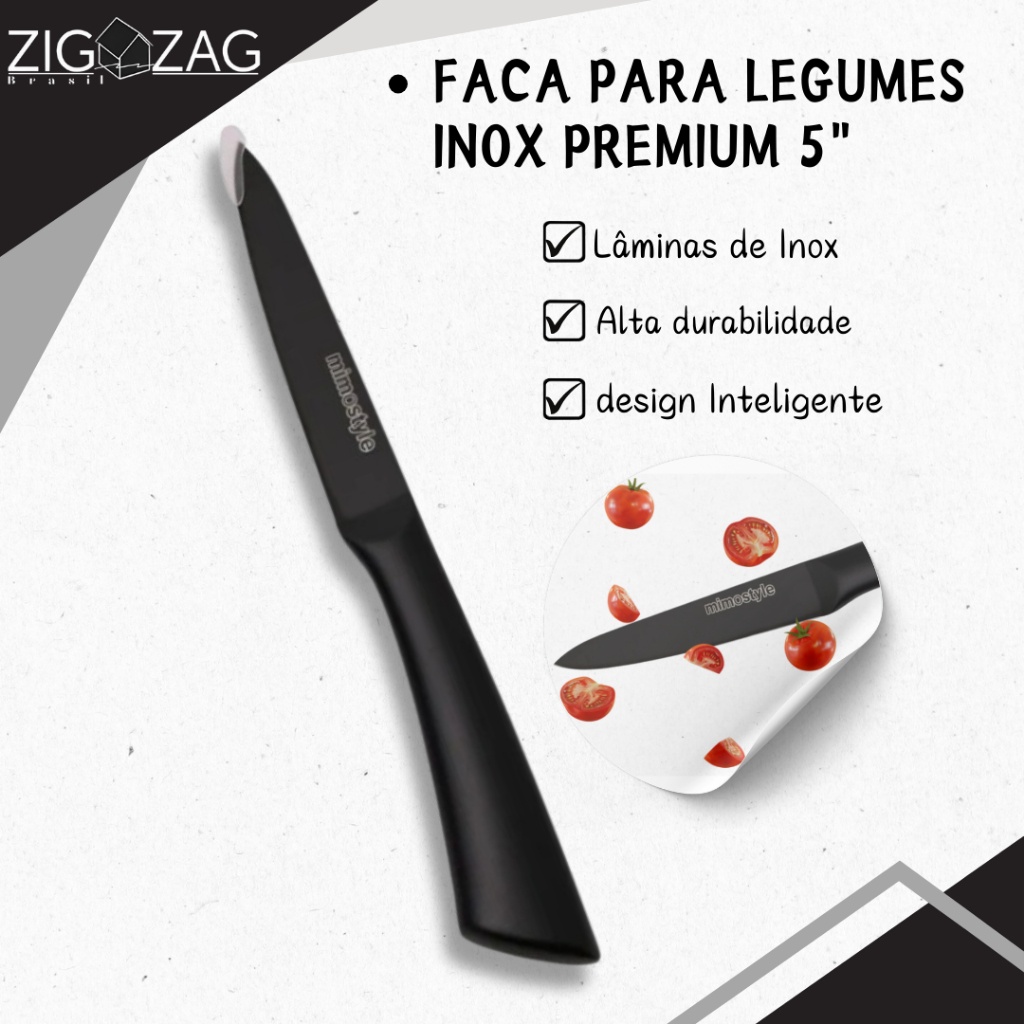 Faca para Legumes Inox Premium, Preta | Ideal para Cortes Rápidos e Eficientes