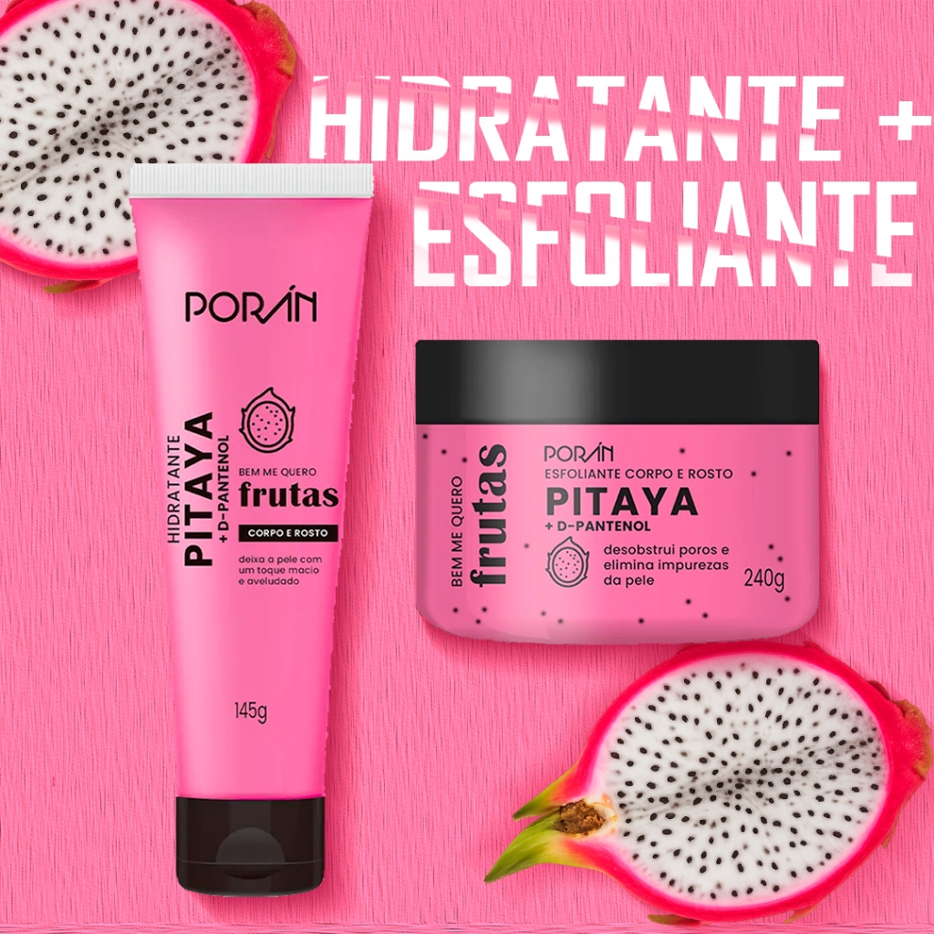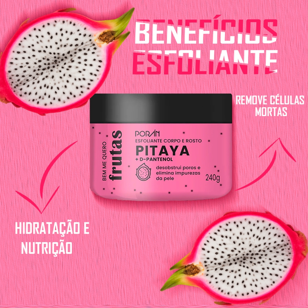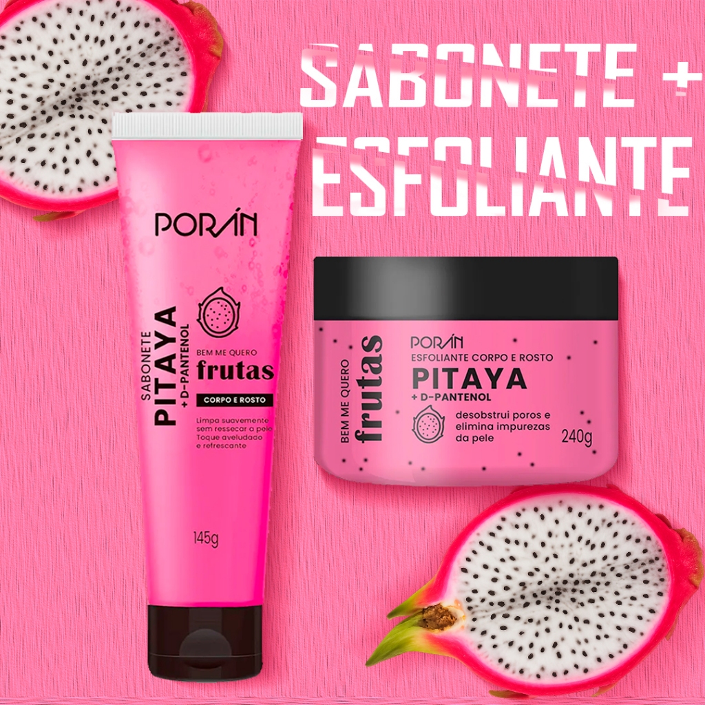 Kit Esfoliante + Sabonete + Hidratante Poran Linha Bem Me Quero Frutas Vegano kit banho PITAYA