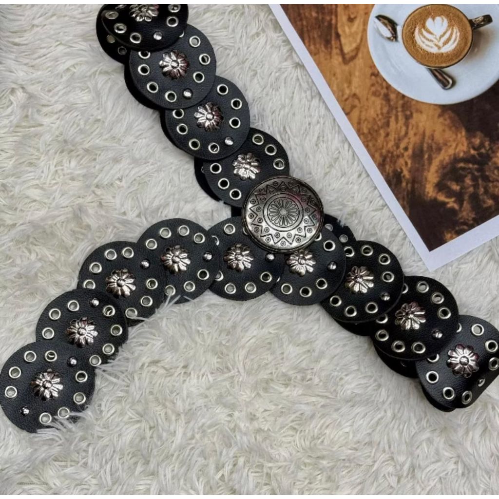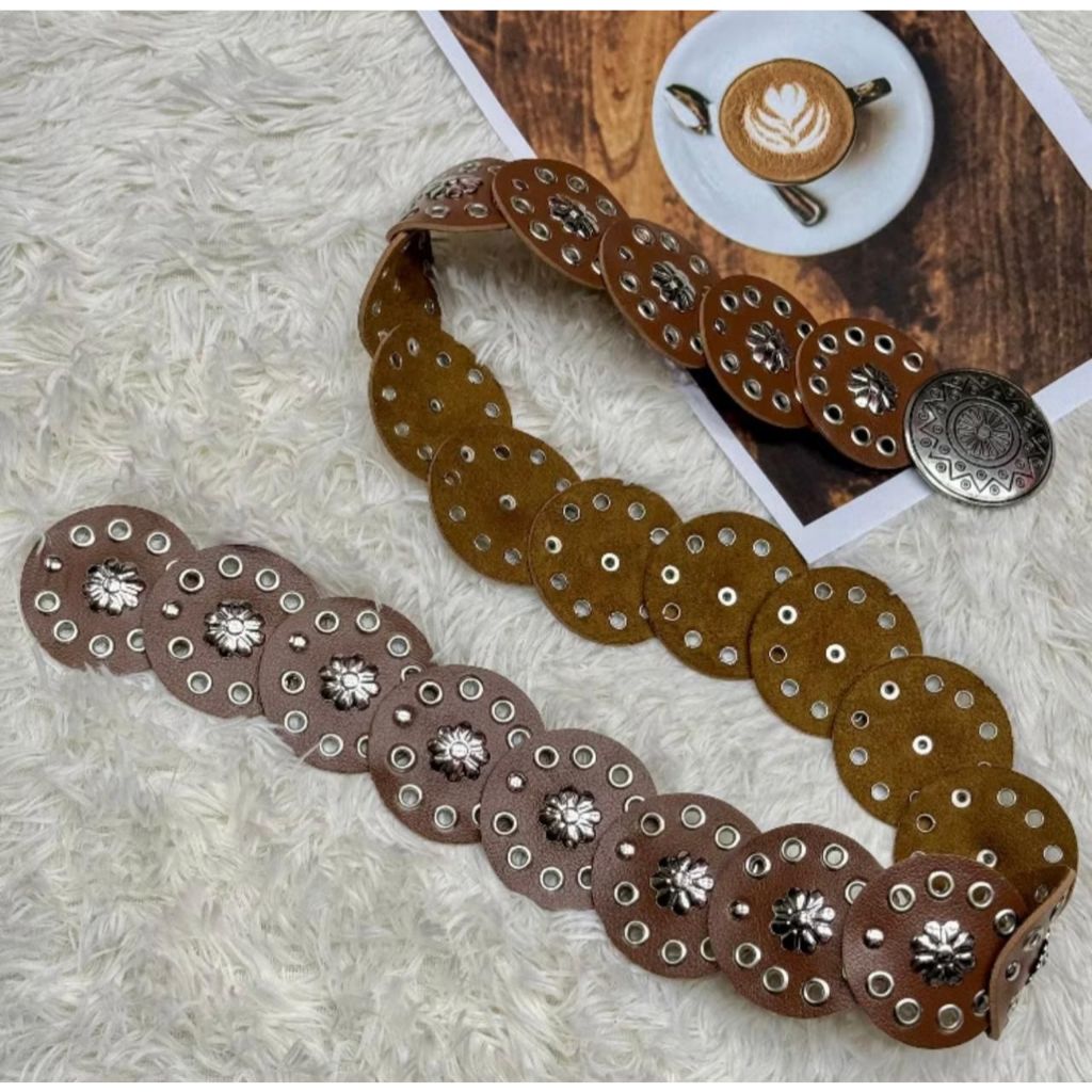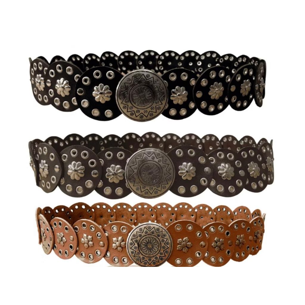 Cinto Boho Feminino Estilo Country | Fivela Vintage Prateada e Dourada