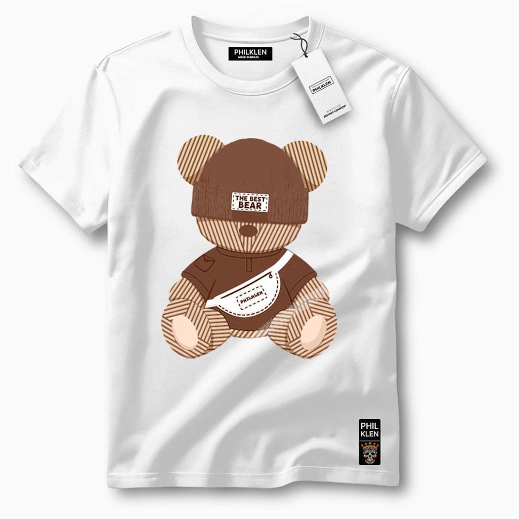 Camiseta Algodão Premium Estampa Urso Gorro Unissex Masculina e Feminina Philklen