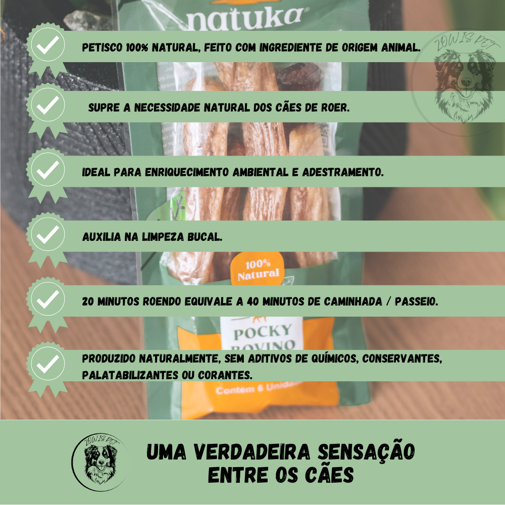 Petisco Pocky Bovino 6 Un Desidratada Mordedor 100% Natural Para Cães e Gatos - Natuka