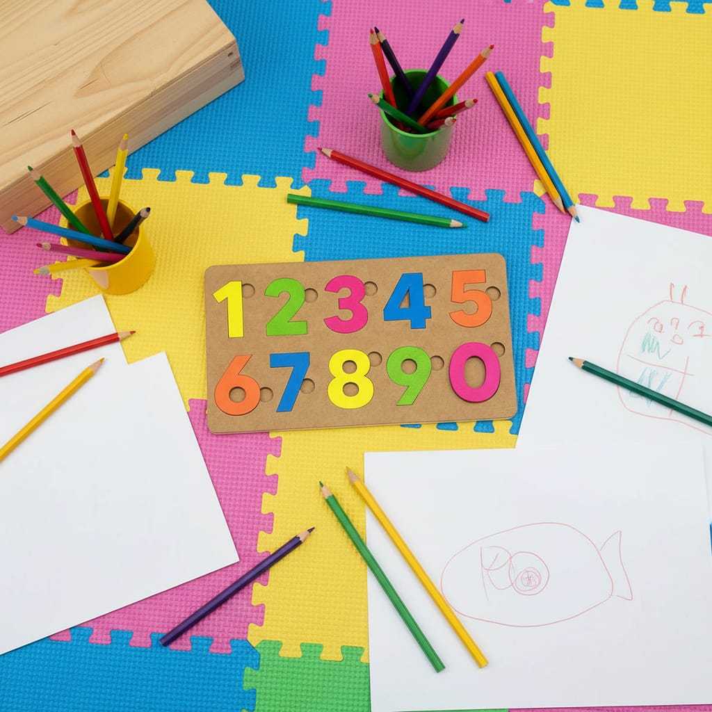 Brinquedo Pedagógico Números Educativo Quebra Cabeça Mdf Neon Alfabetização Infantil Contagem