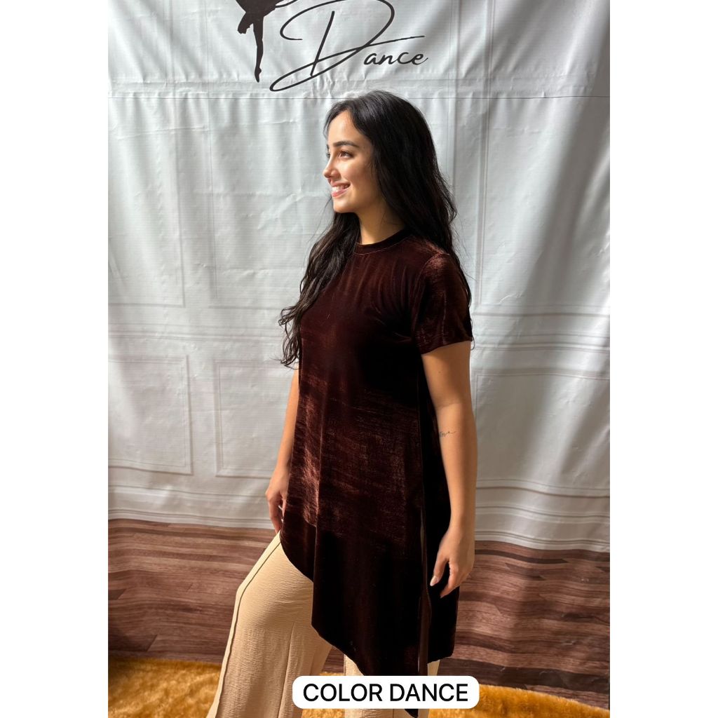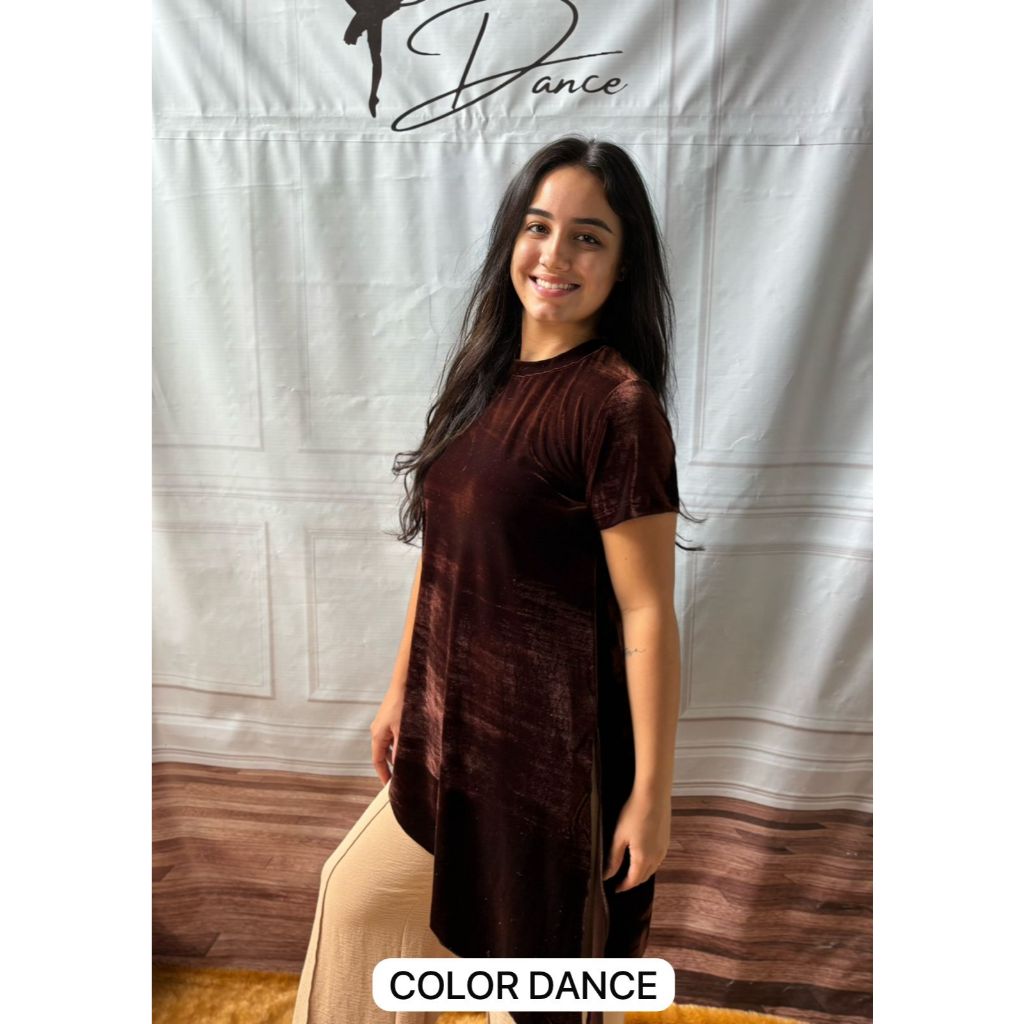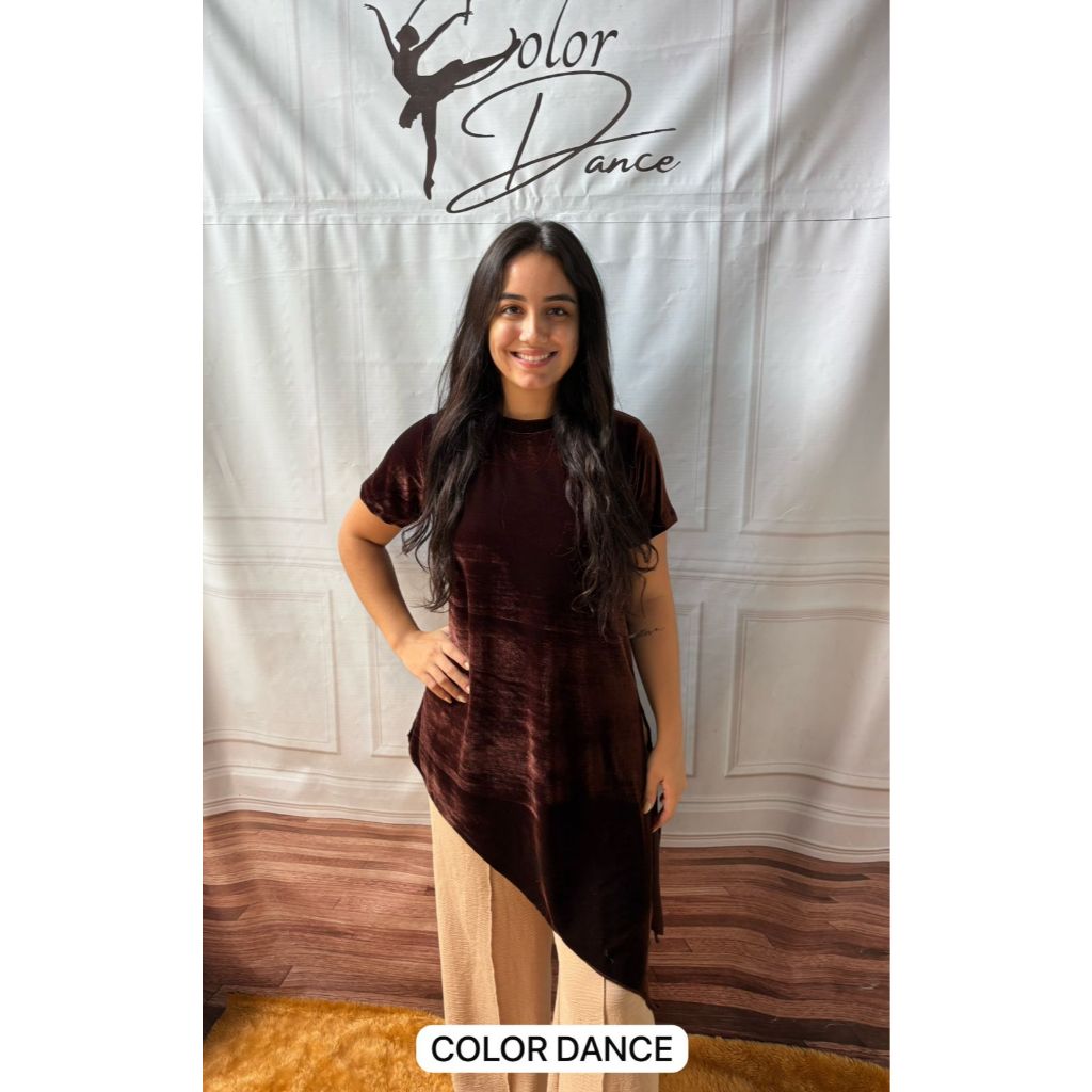 Bata Feminina de Dança Profética Gospel Veludo Marrom Luxo