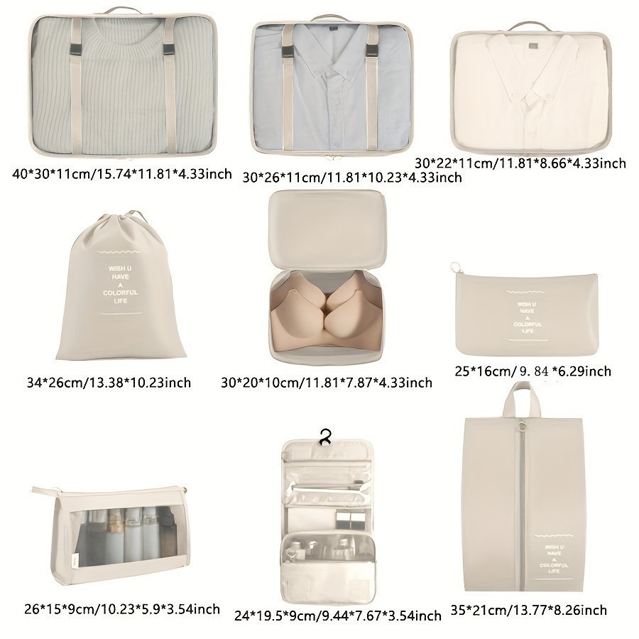 Kit 9 Pecas Saco De Organizar Viagem De Cosméticos De Bagagem Multifuncional Para Roupas E Sapatos MARIA KATIA