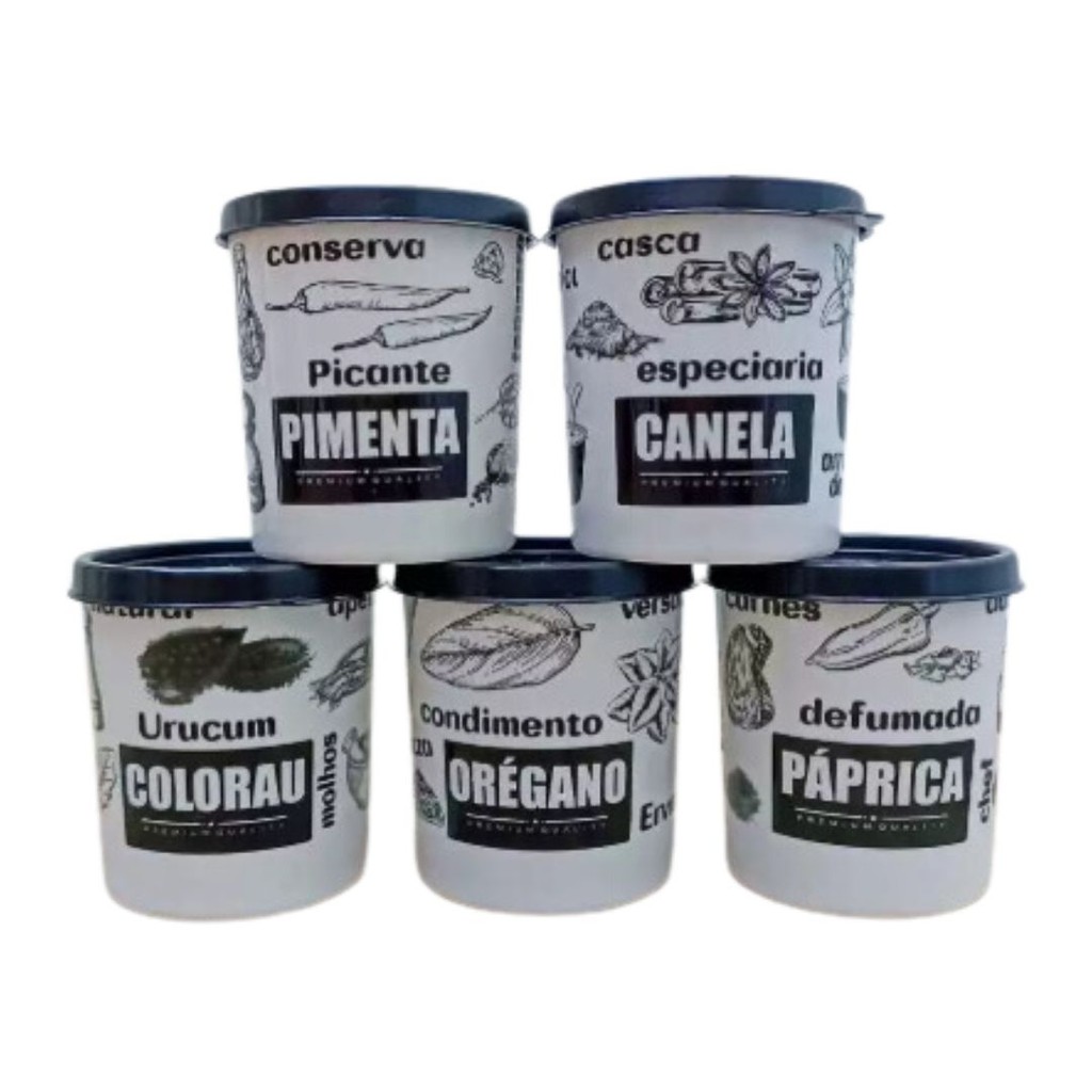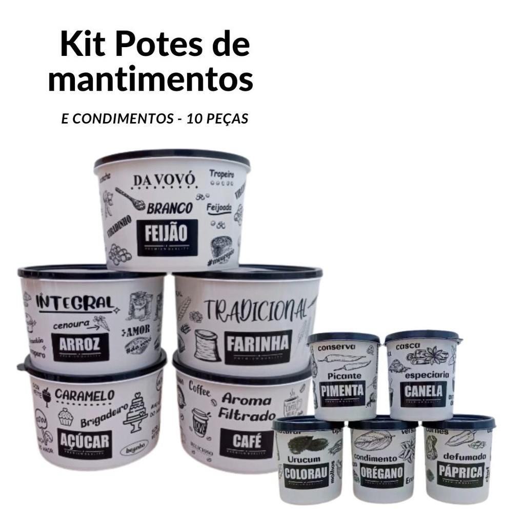 Kit Potes de Mantimentos 10 peças Branco/Preto