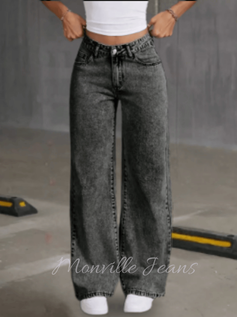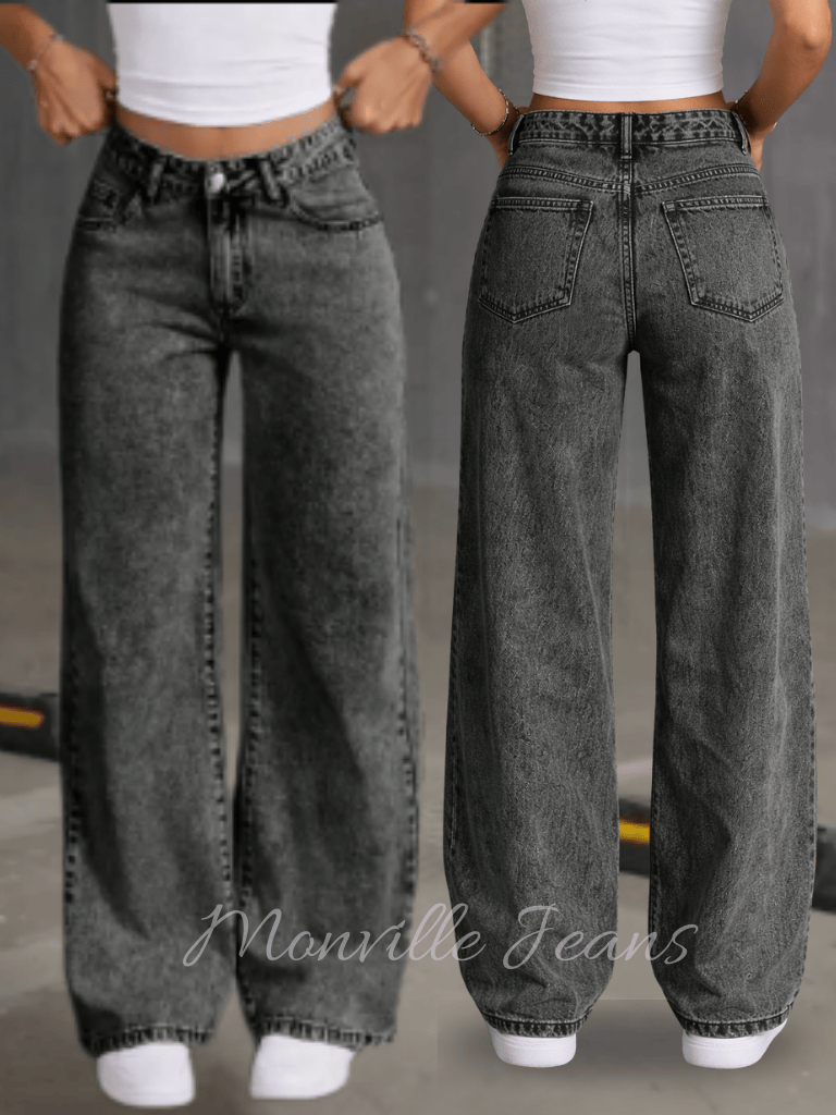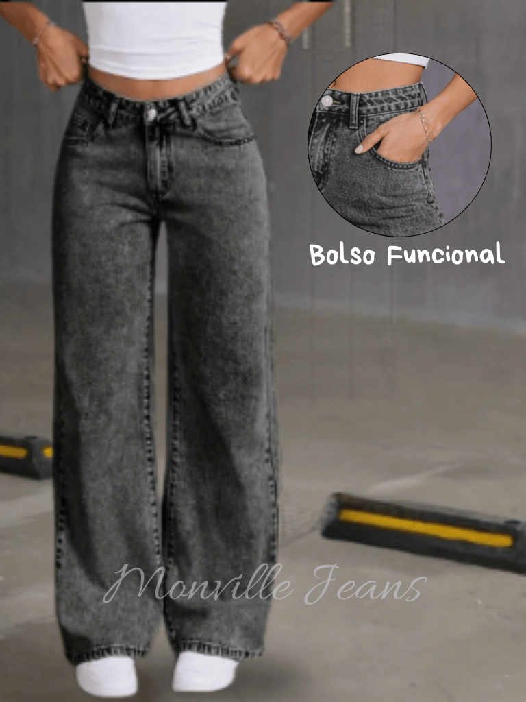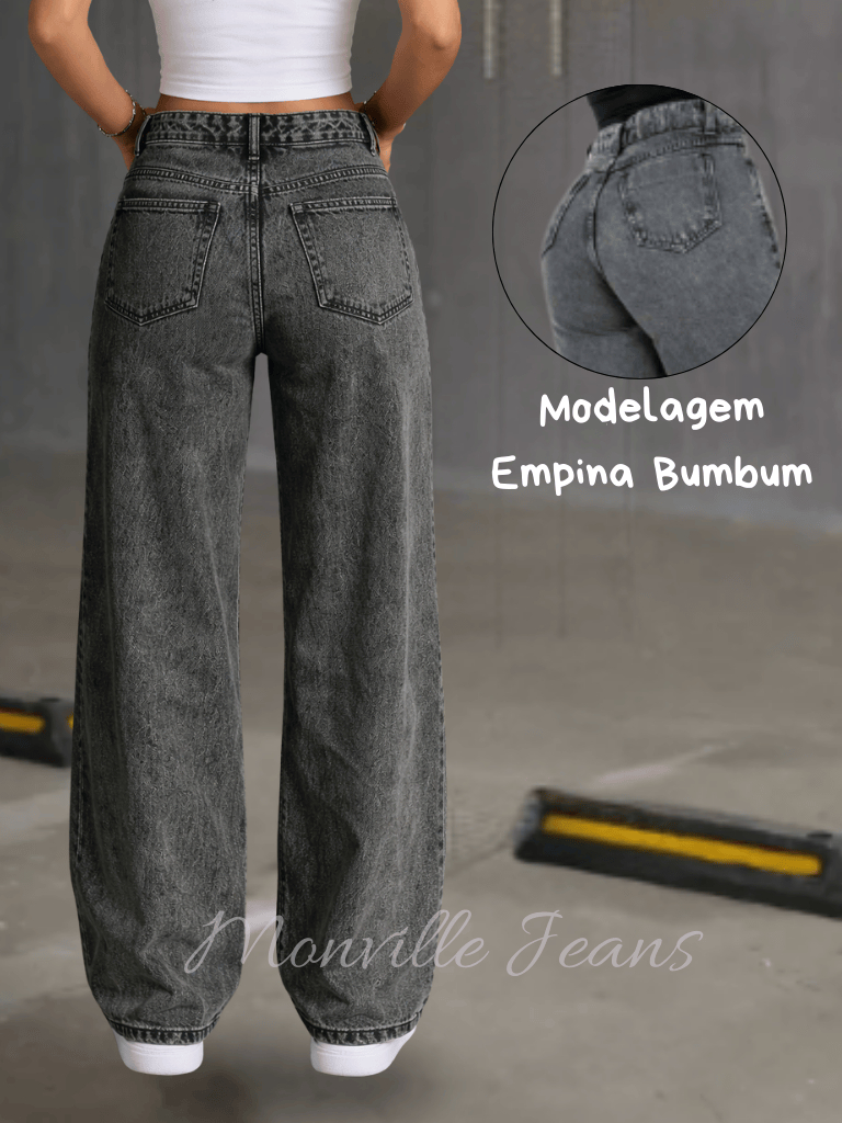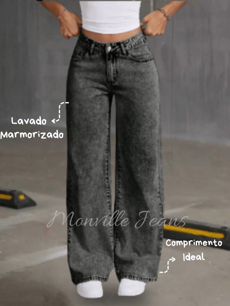 Wide Leg Marmorizada Preta Calça Feminina 100% Cintura Alta Empina Bumbum Confortável