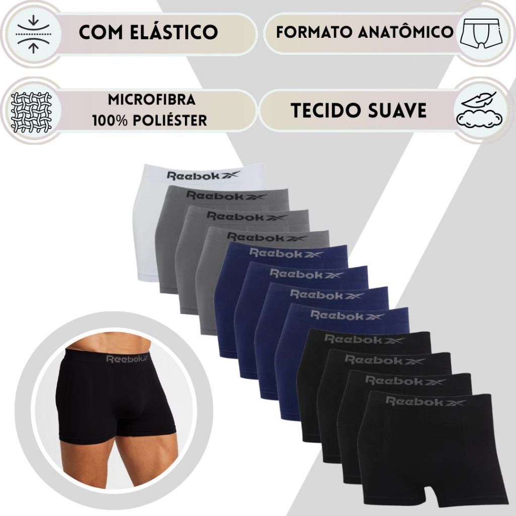 Cueca Box Reebok Masculina Elastano Microfibra Boxer Sem Costura Sortida Original Leve Suave