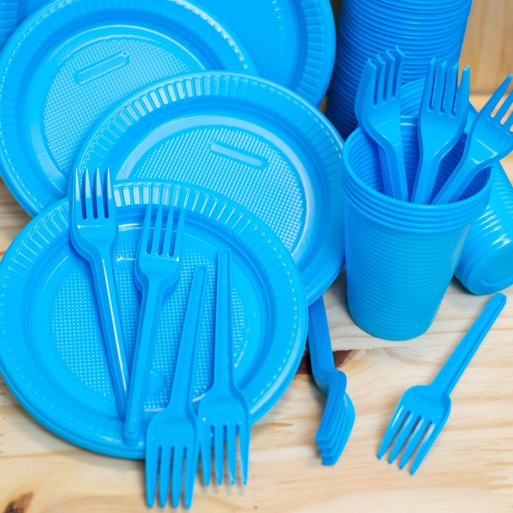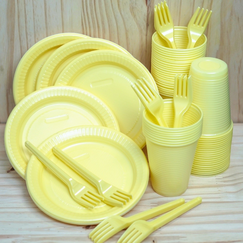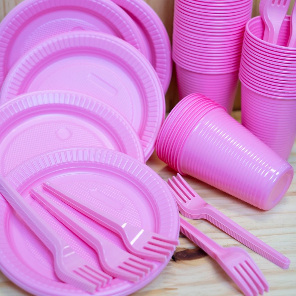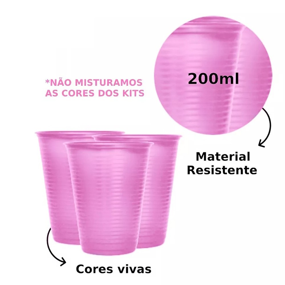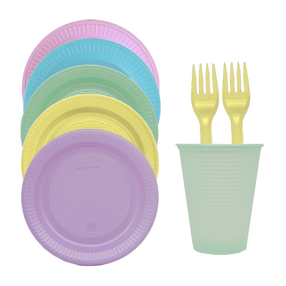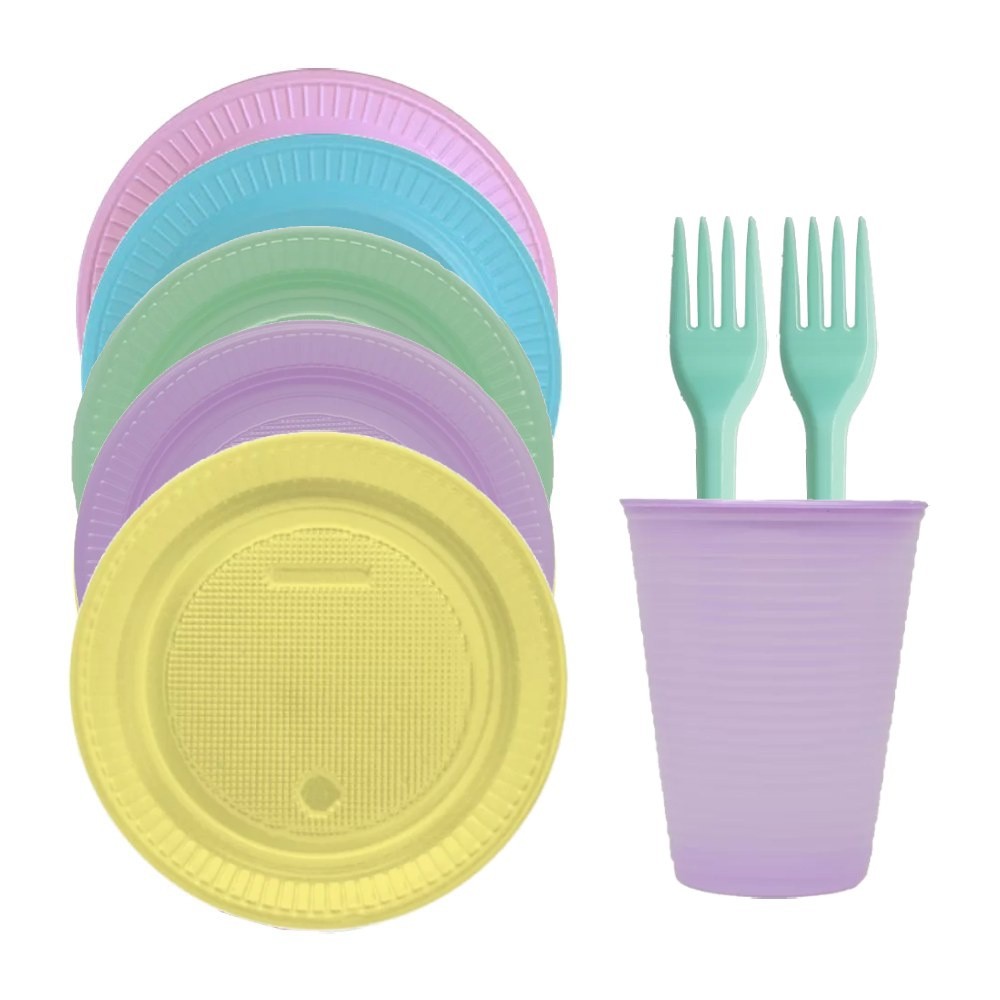 Kit Festa Candy Colors 100 Pessoas Prato, Copo e Garfo