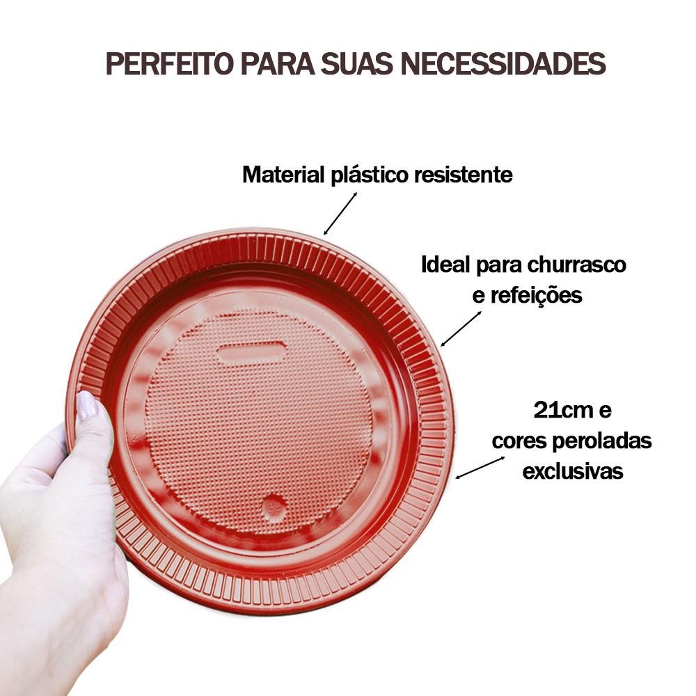 Prato Descartável Resistente Refeição Raso 21cm Luxo Perolado c/10un