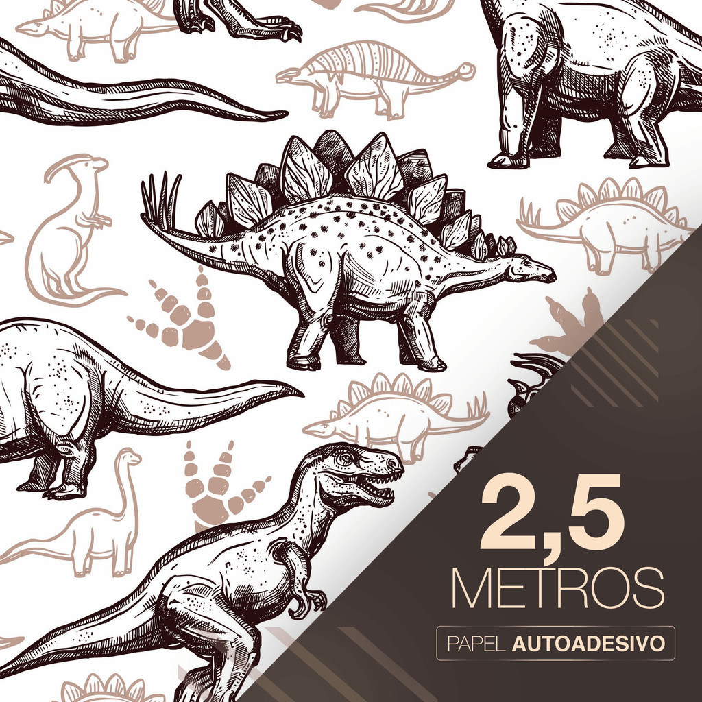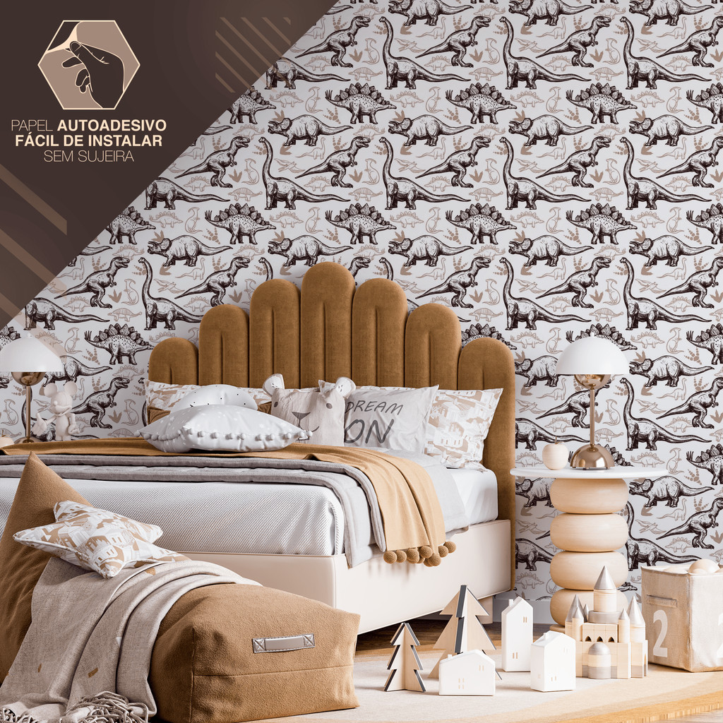 Papel de Parede Adesivo Dinossauro Preto e Marrom Resistente Fácil de Aplicar