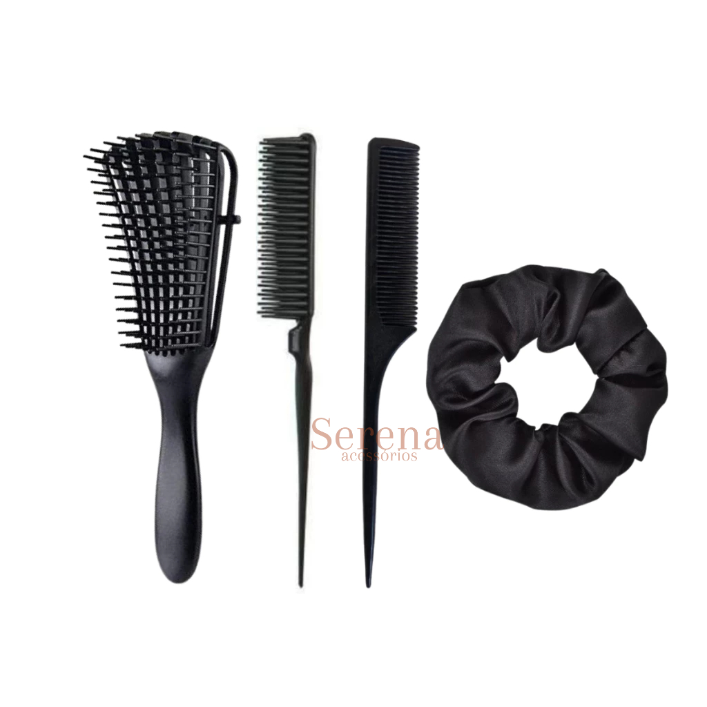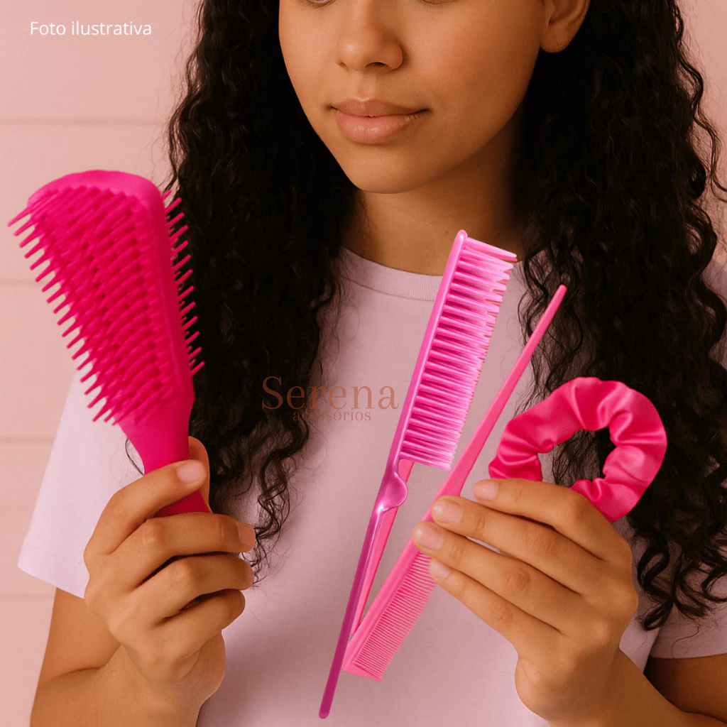 Kit De Escovas Polvo 3 Fileiras Cabo Fino Xuxinha De Cetim Cabelos Cacehados Lisos Pente Beleza