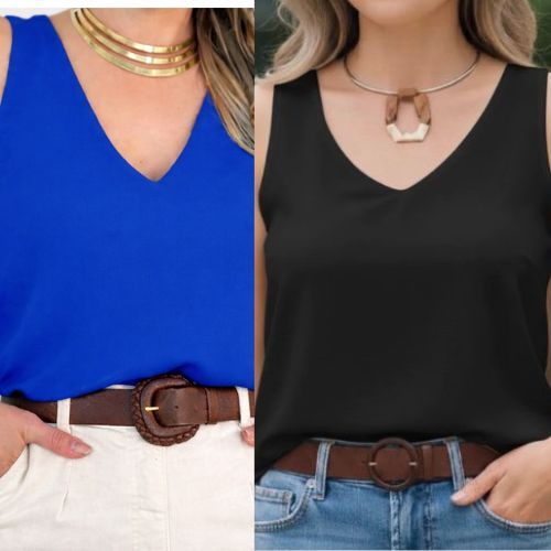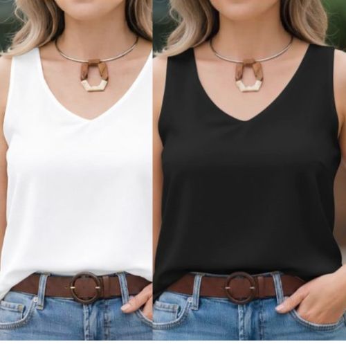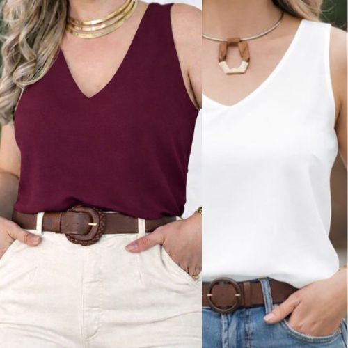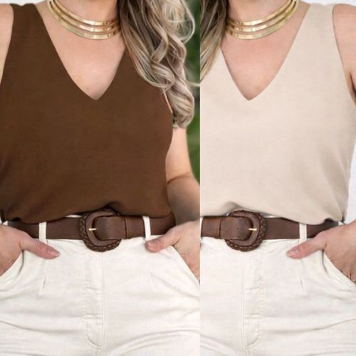 kit 2 Peças Blusa Regata Femenina Alça Grossa em Teçido Duna Forro duplo Elegante tamanhos P M G GG