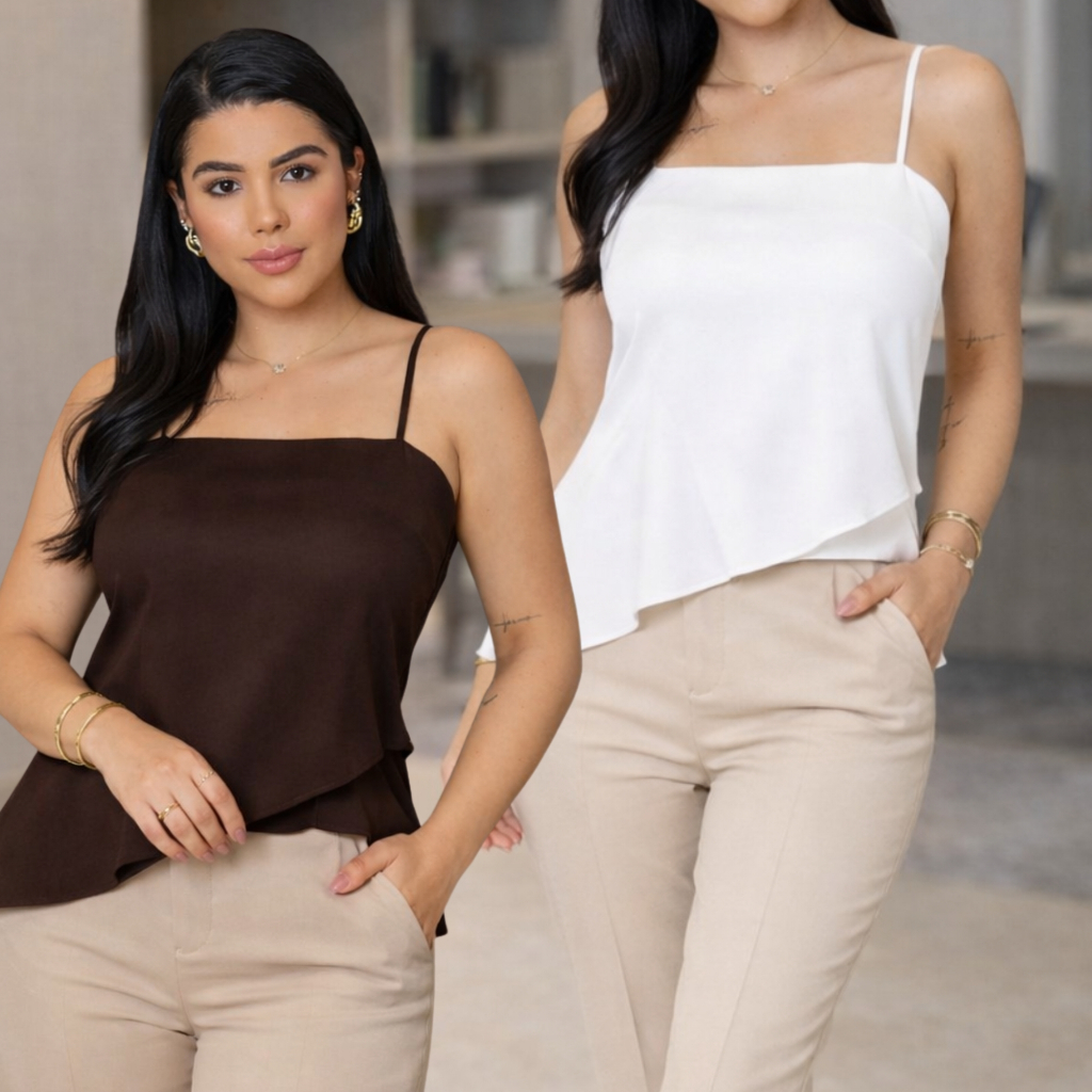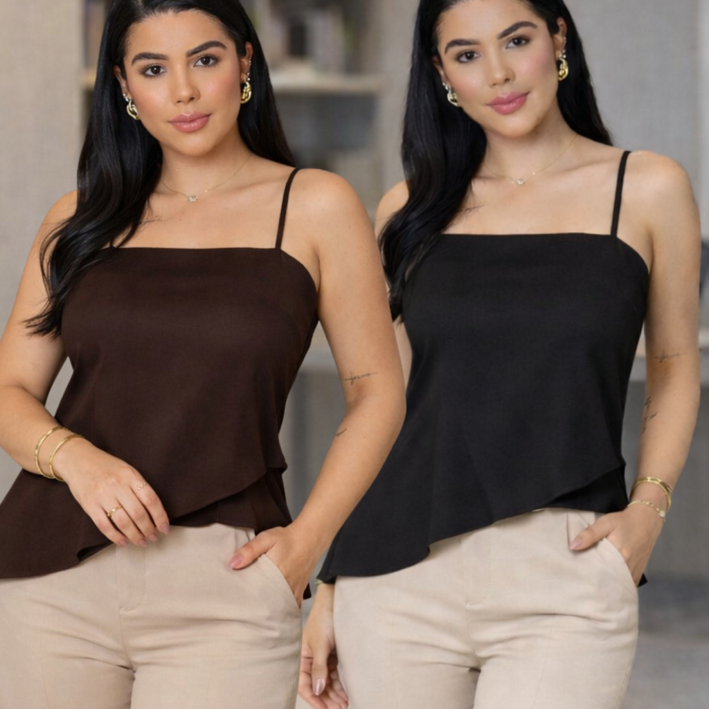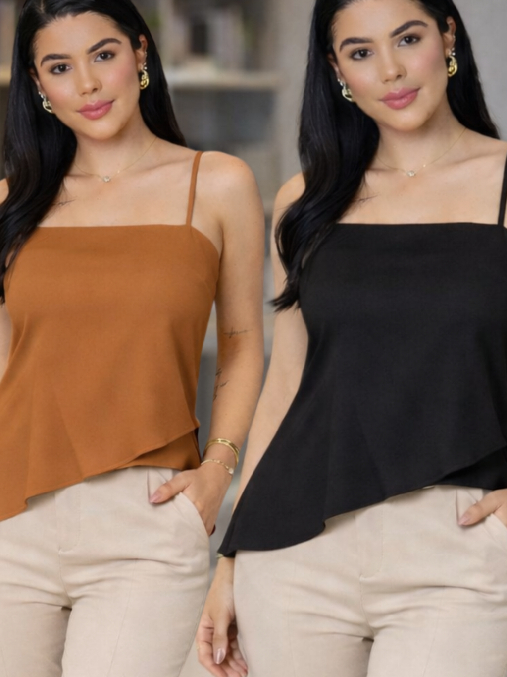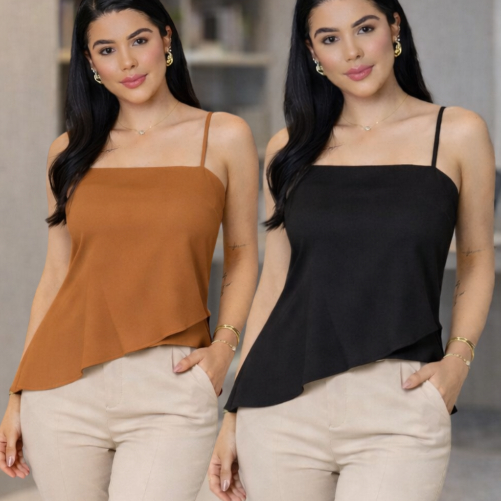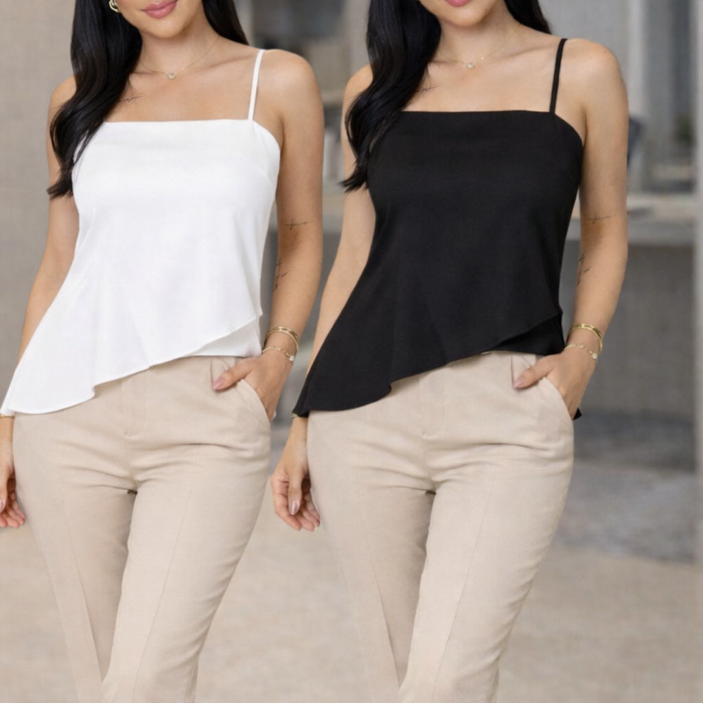 kit 2 Blusa Regata Femenina Assimétrica Moderna Bico Diagonal DUNA