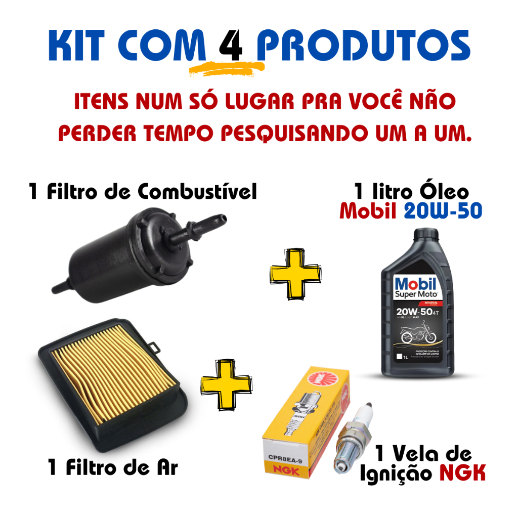Kit Revisao Cg 160 Vela Filtros Oleo Mobil 20w50 Mineral