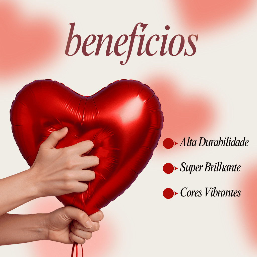 Kit 50 Balões Coração Grande Metalizado 21cm Vermelho Dia das Mães Namorados Casamento Aniversário