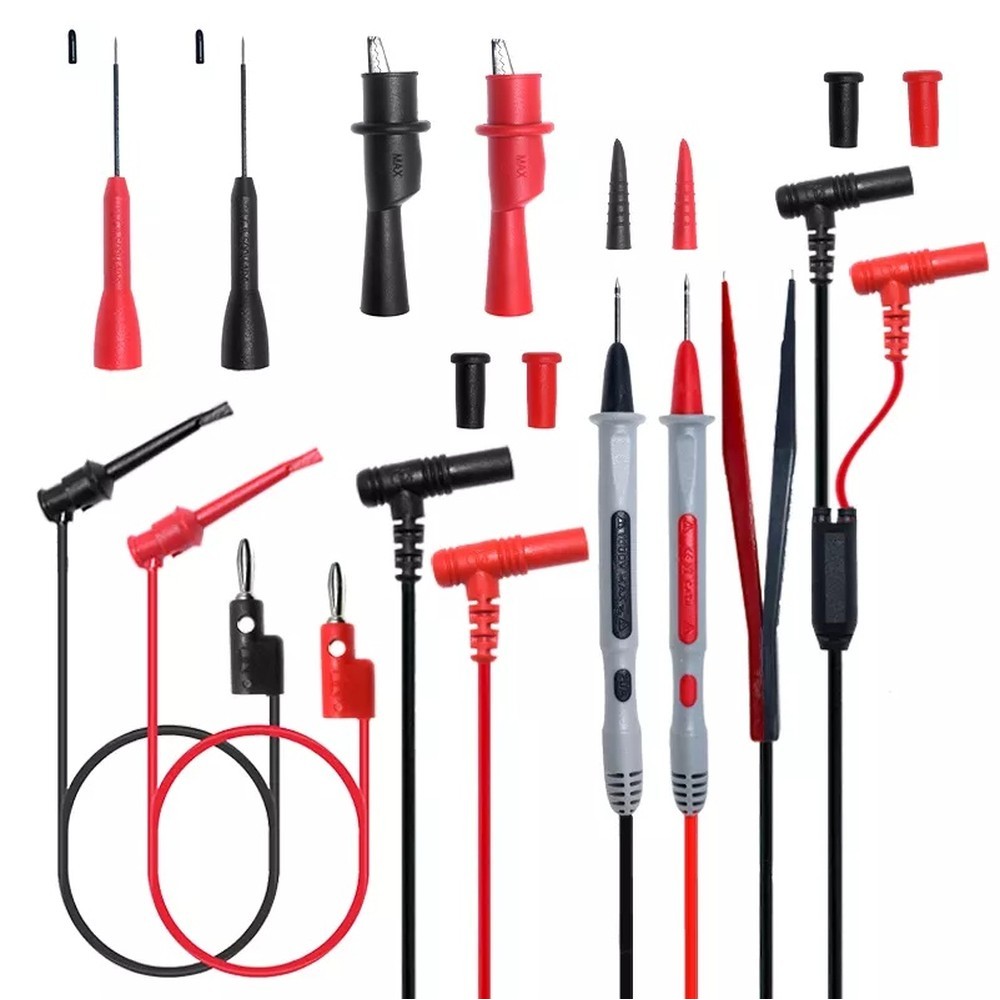 Jogo de Pontas de Prova Universal para Multímetro com Ponta Fina Agulha Clip Jacaré e Pinça SMD