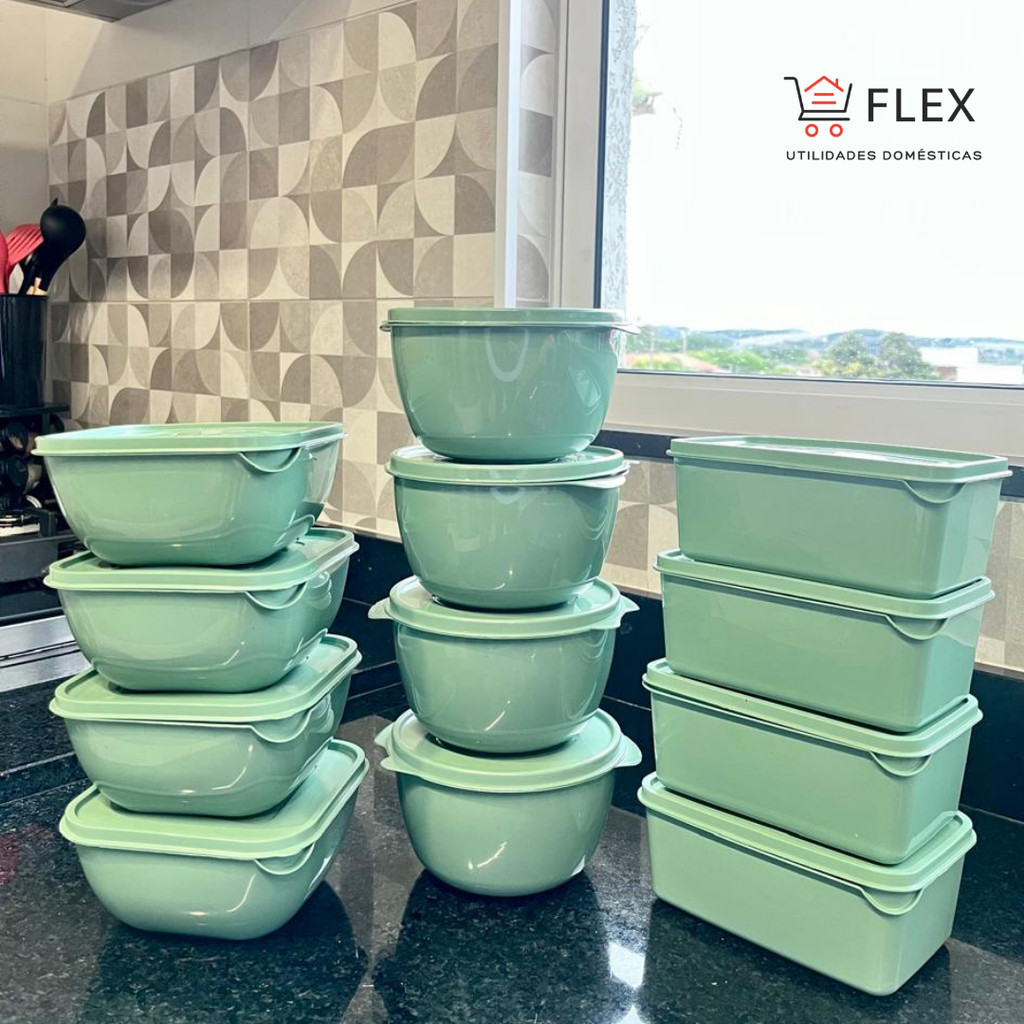Kit 12 Potes Plásticos Formatos Variados Marmita de 1 Litro