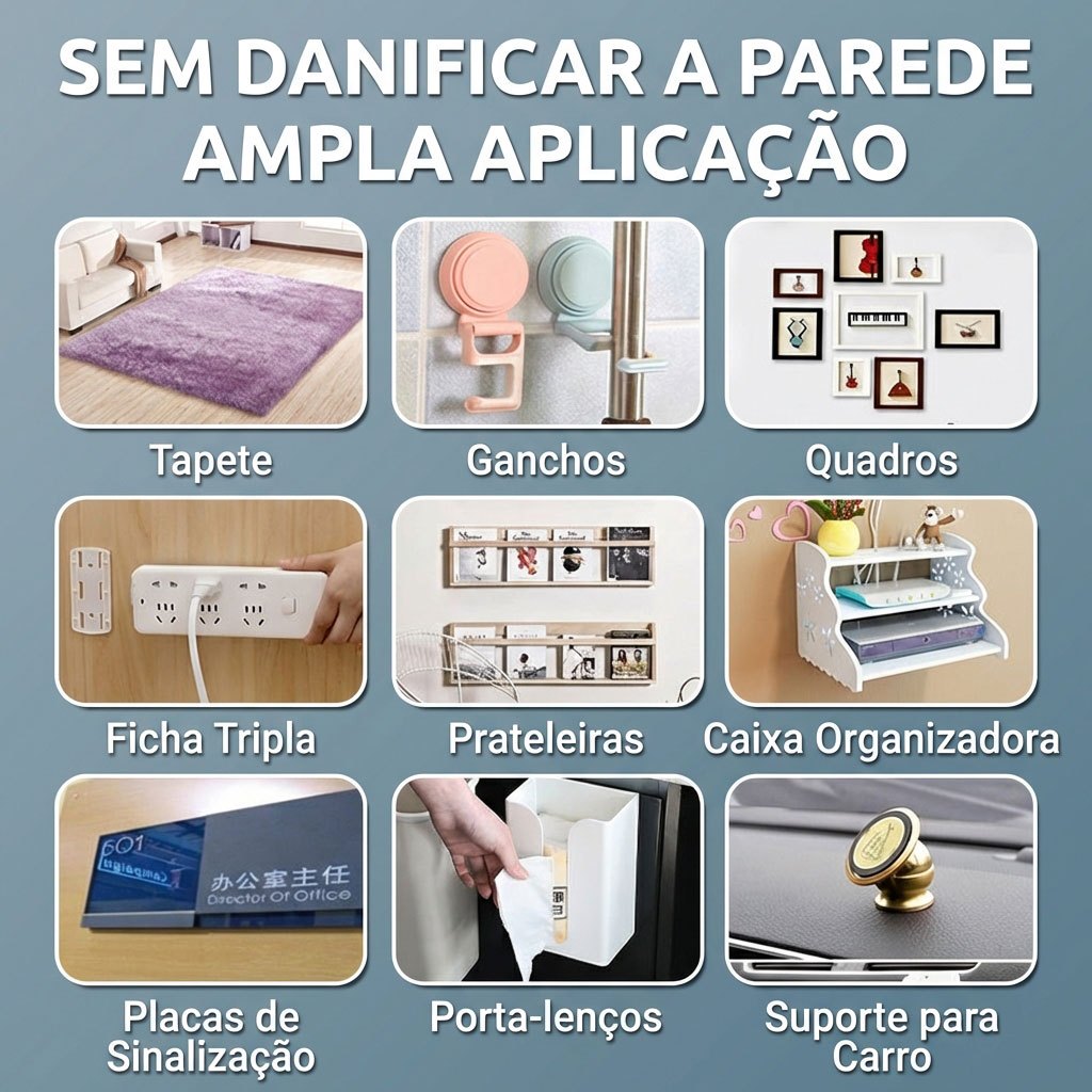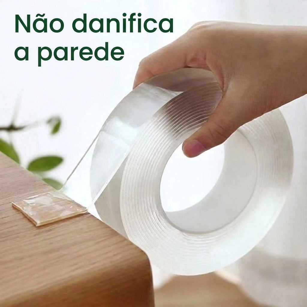 Fita Dupla Face 2/3m Transparente fixa Forte Multiuso Antiderrapante para Casa Escritório