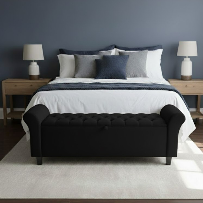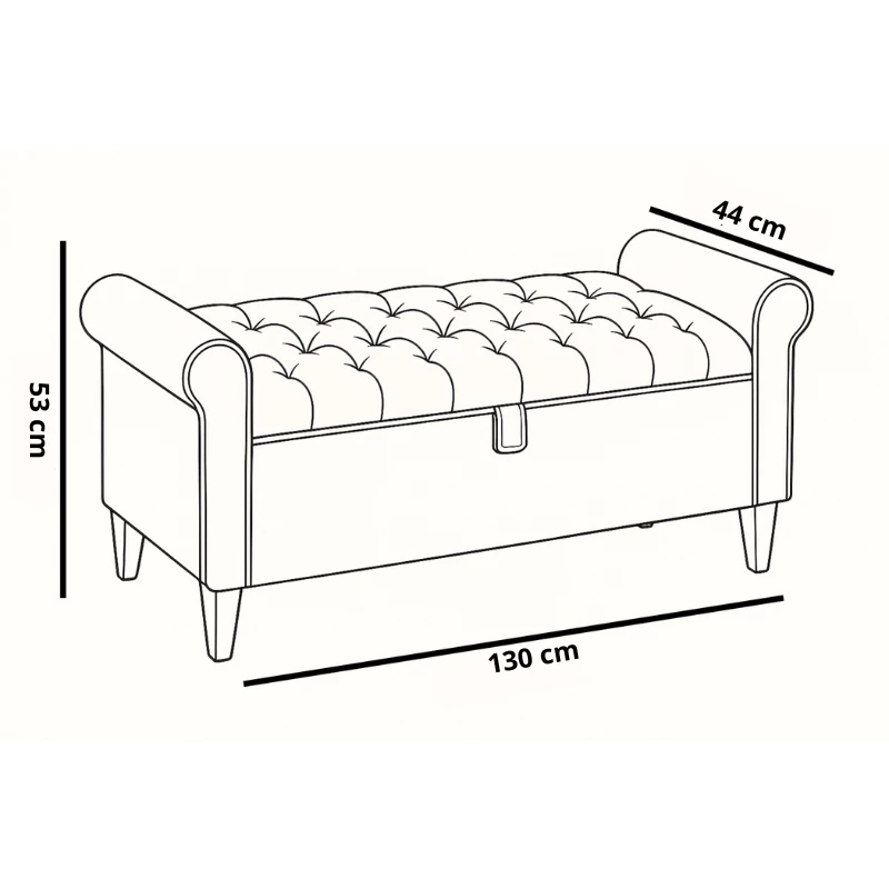Baú Recamier Divã Paris Capitonê 130cm Suede Estrtura em Madeira Para Cama Casal Quarto - AV
