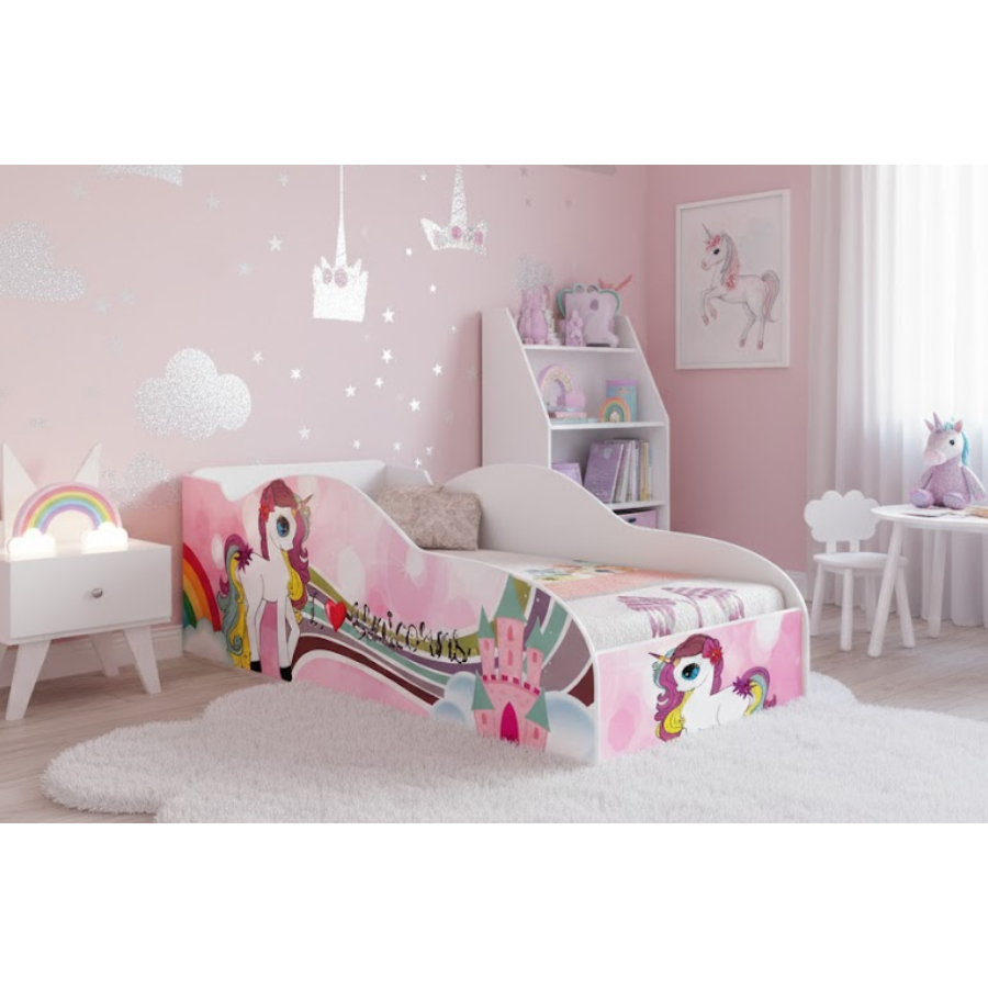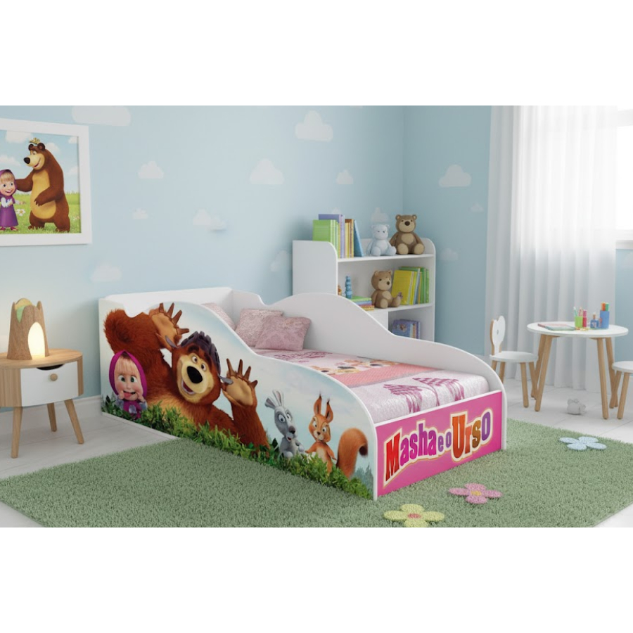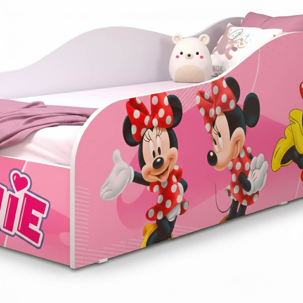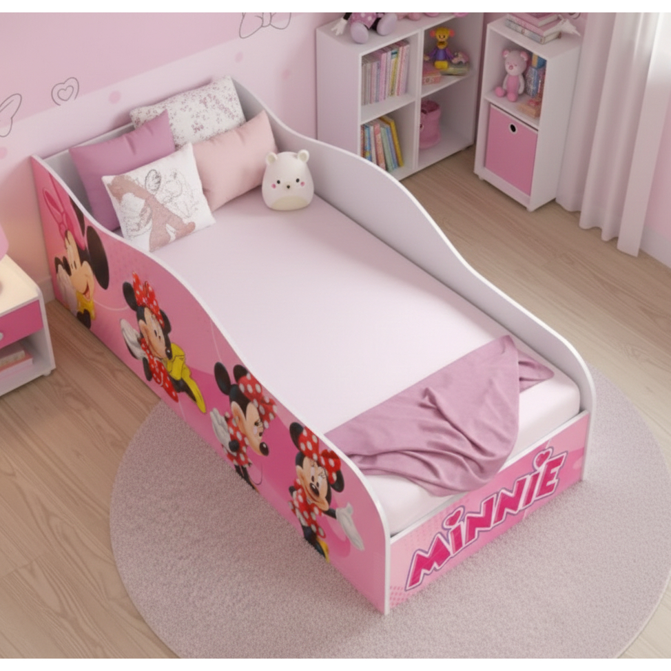 Cama Carro Mini Infantil Feminina Menina em MDF Adesivado Tematica Personagens Divertidos – AV