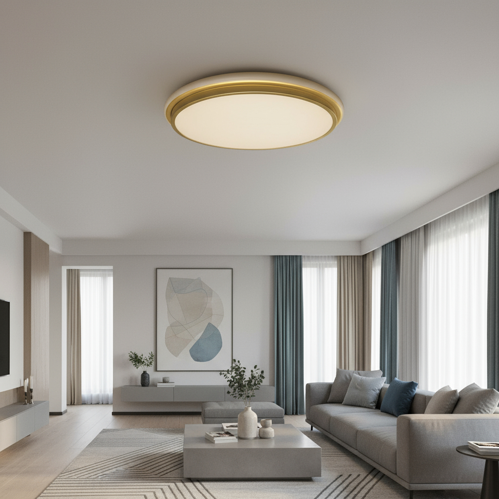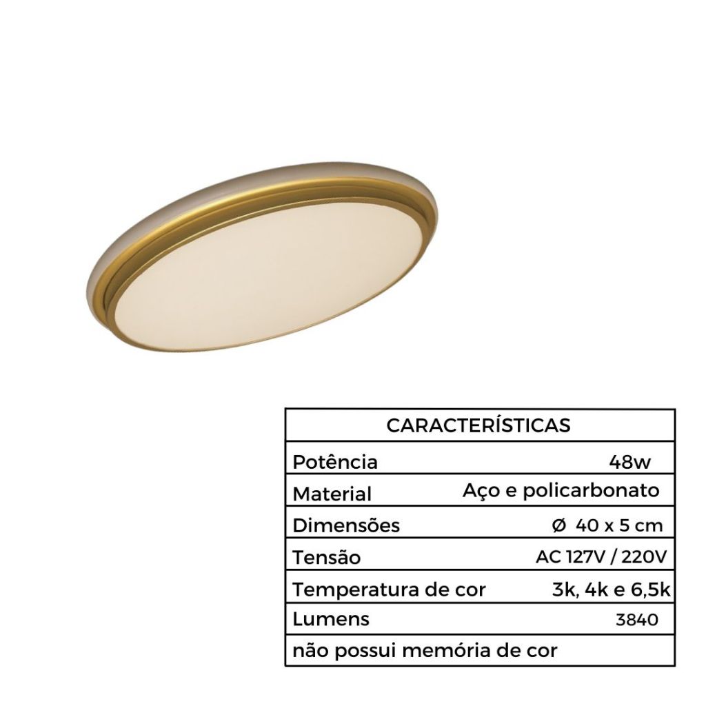 Luminaria Led Plafon Moderno Dourado redondo 48w com detalhe em LED e corpo 100% metal Premium modelo Tipo Saturno