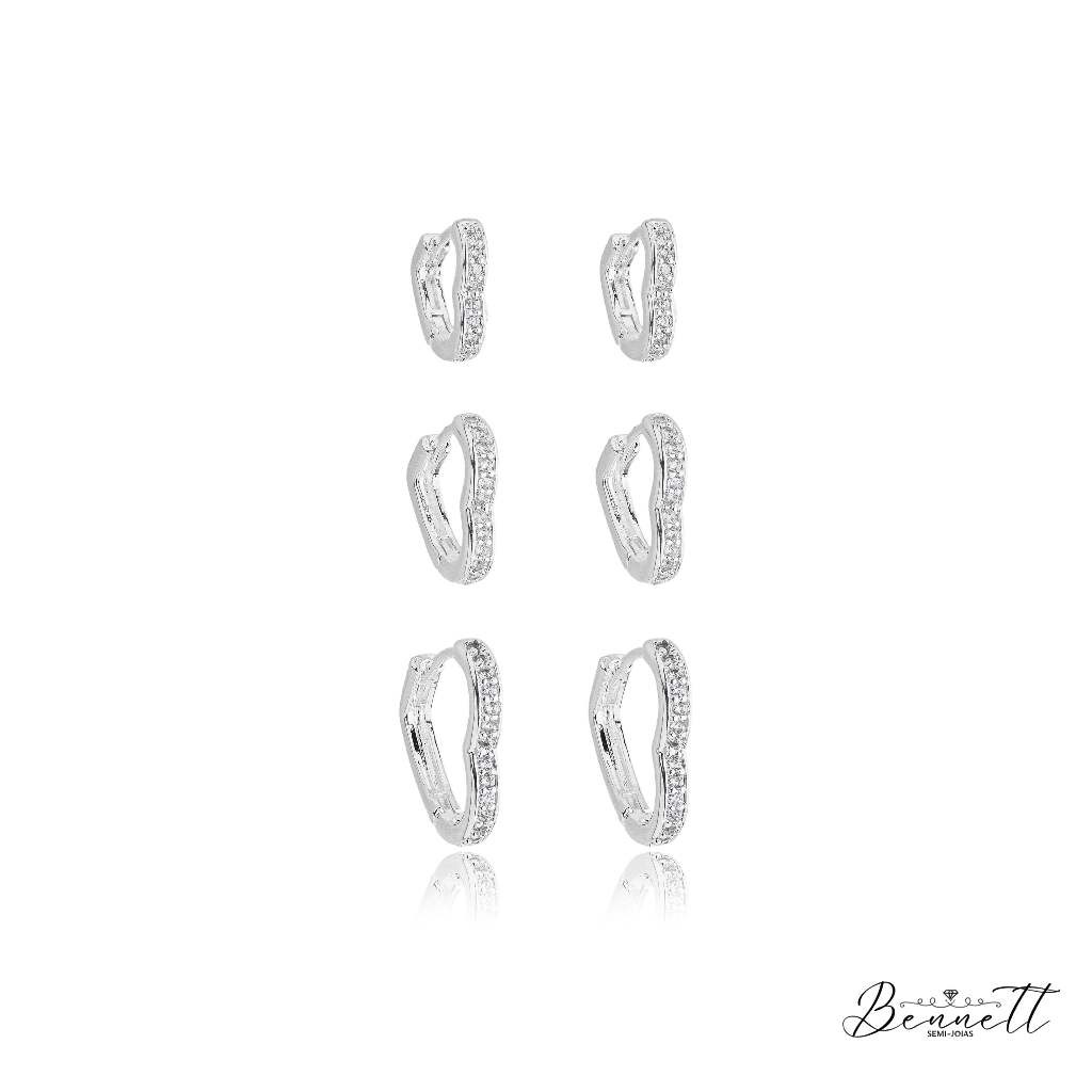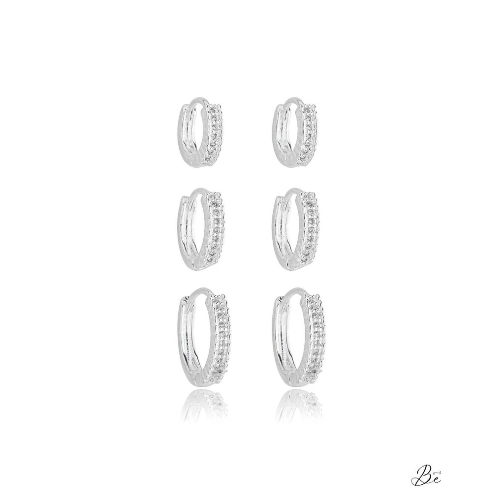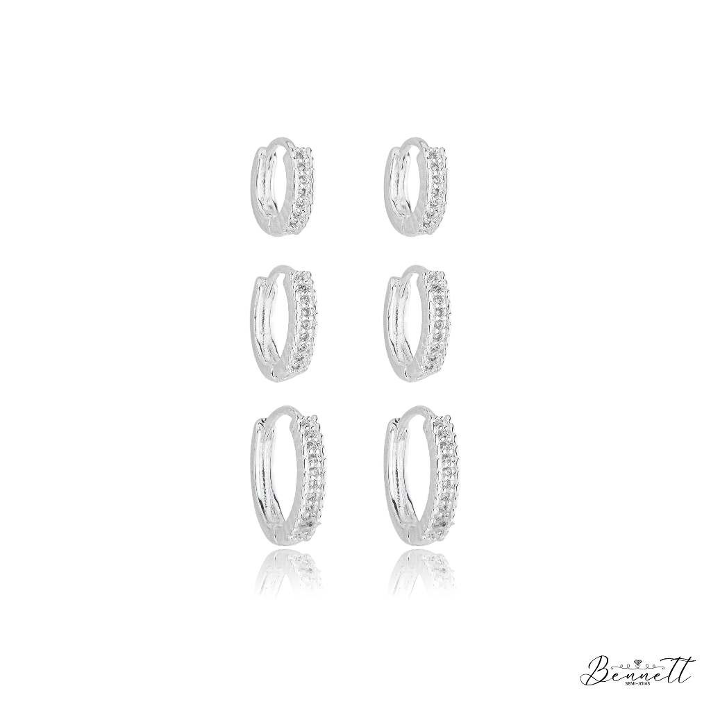 Trio brinco de argola redondo zirconia prata 925