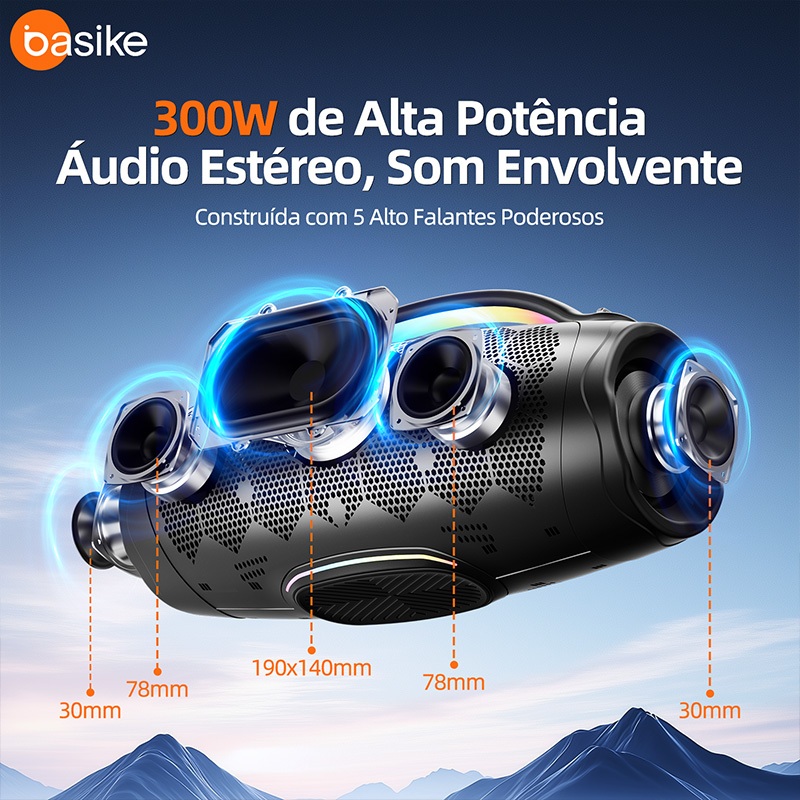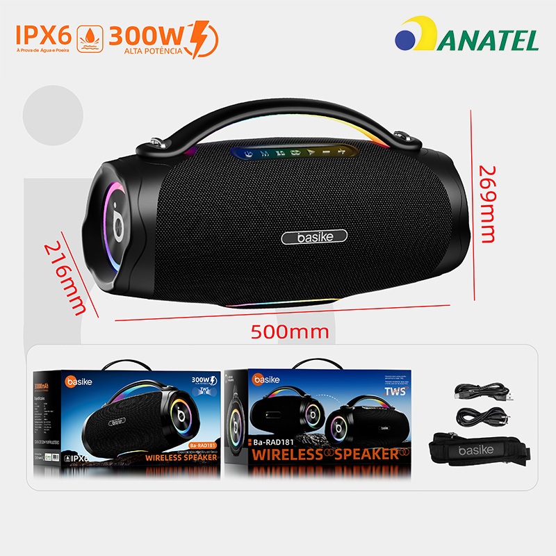 Basike alto-falante bluetooth 5.4 sem fio 300W Caixa Subwoofer Som Estéreo De Alta Fidelidade Party Ipx6,RAD180