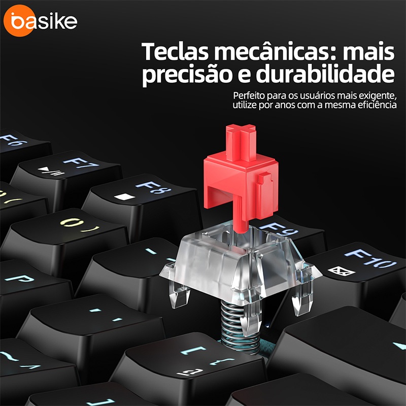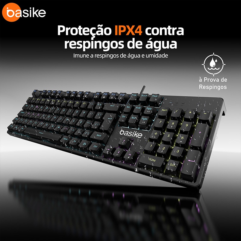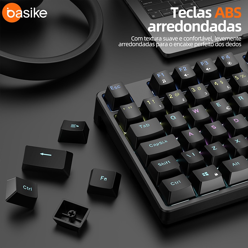 Basike Teclado Mecânico Switch Vermelho 89 / 106 Teclas,Teclado Gamer 26-Key Rollover Ergonômico,ABS Keycaps,RGB,key313