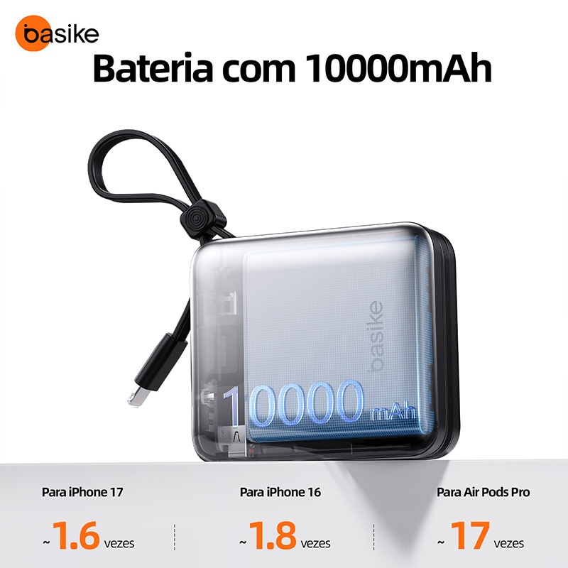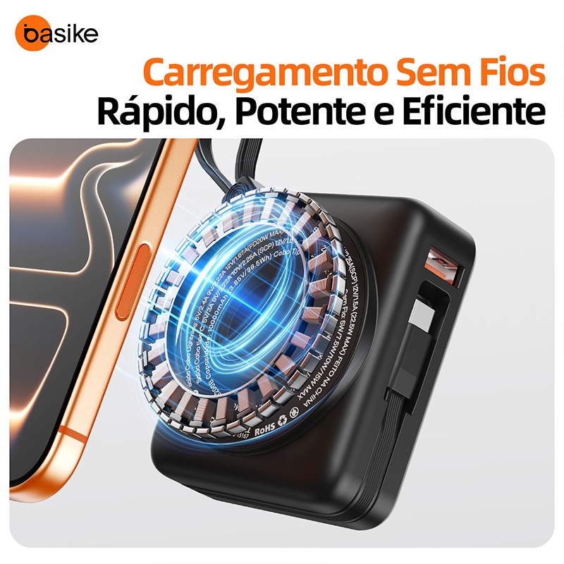 Basike Power Bank 10000mah PD 22.5 W Mini,Bateria portátil Carregamento sem fio para celulares/relógios/fones,b200b