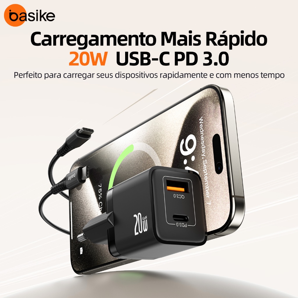 Basike Carregador turbo tipo c para iphone e celular - 20W carregador rápido para uso diário em casa,car046cc
