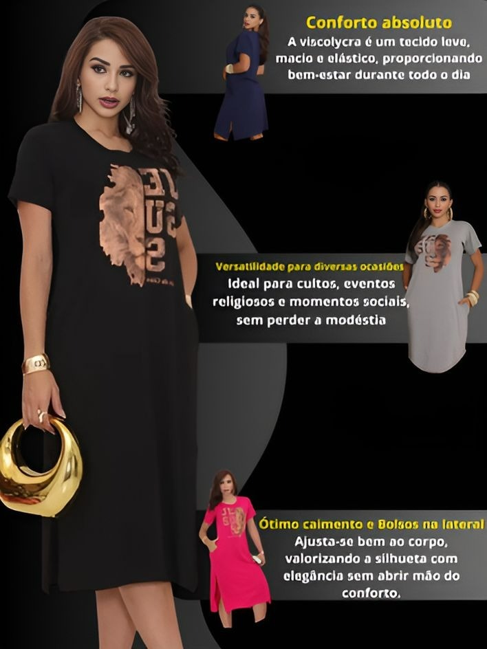 Vestido Evangelico Midi Feminino Moda Evangélica Crente Com Bolso Na Lateral Saia Casual