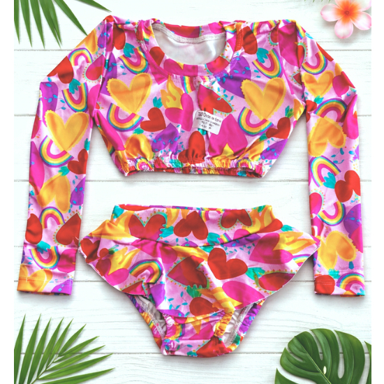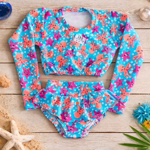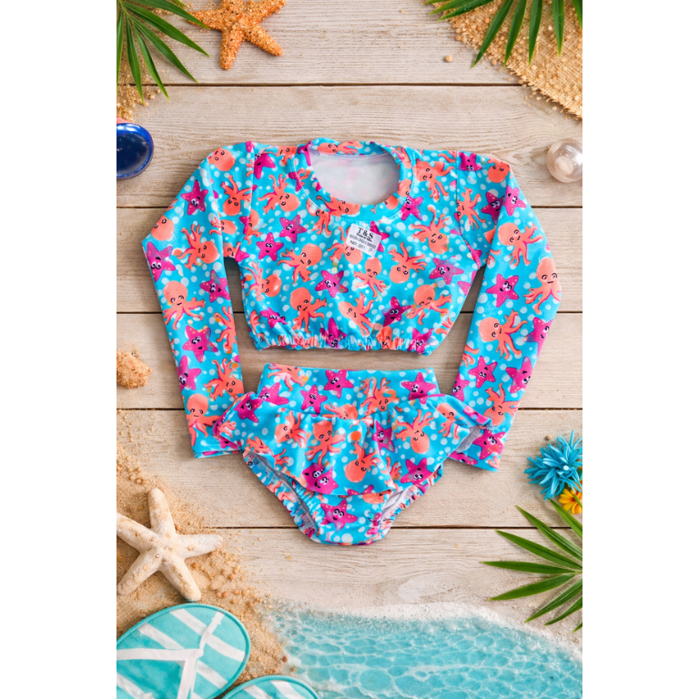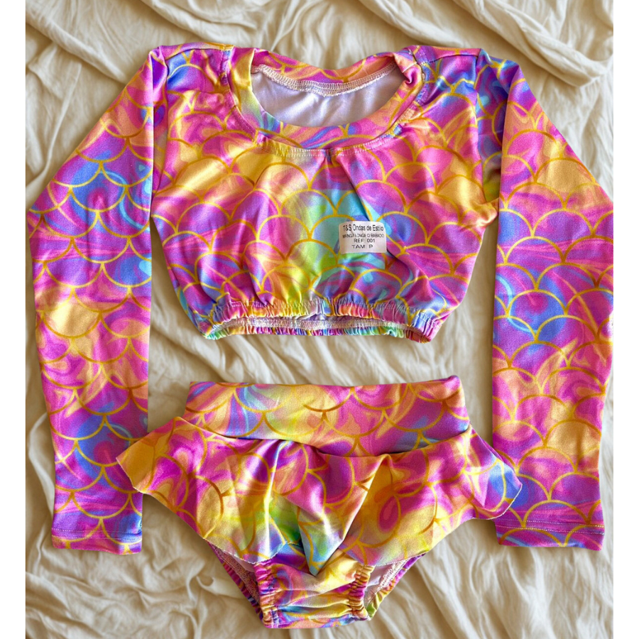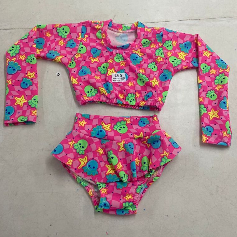 Biquini Infantil Conjunto Top Manga Longa e Calcinha Proteção UV Suplex Premium Moda Praia