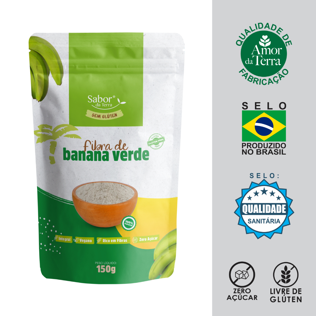 Fibra de Banana Verde 150g Sabor da Terra Natural Rica em Fibras Prebiótica Low Carb Fitness