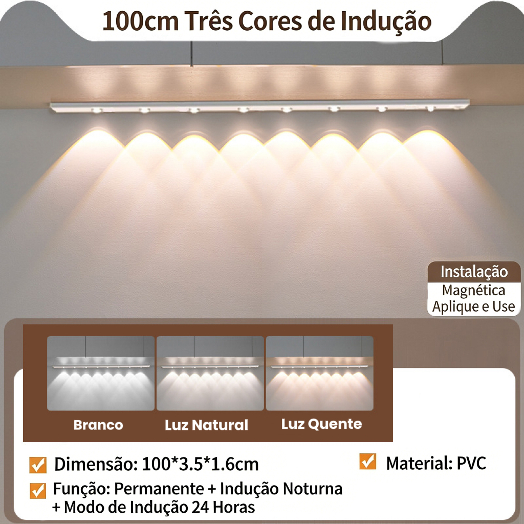 3 Cores Regulável Led Luminária USB Recarregável Lâmpada Sensor De Movimento Luz para cozinha e Sala