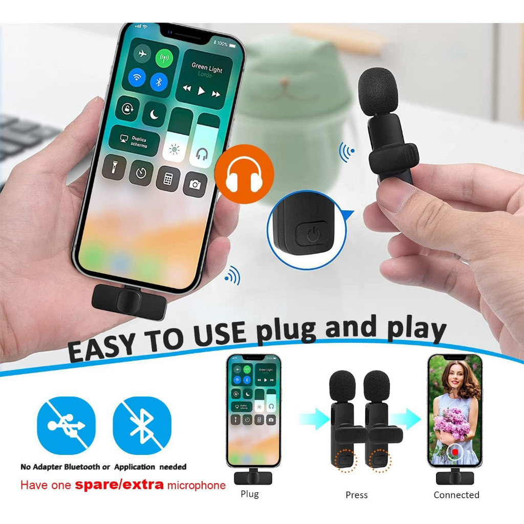 Microfone de Lapela Sem Fio K9 Vlog Compatível Tipo C e iPhone