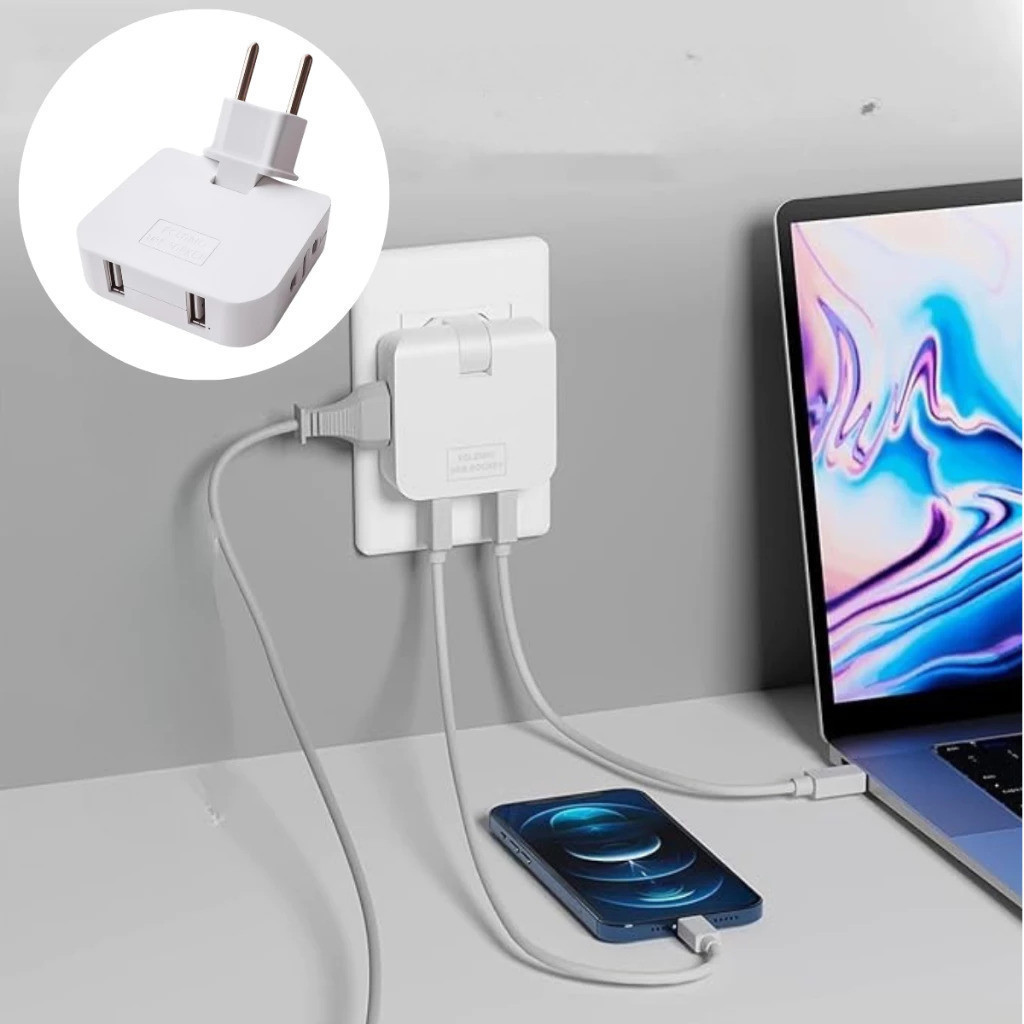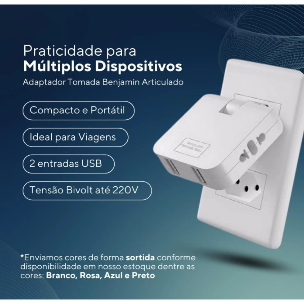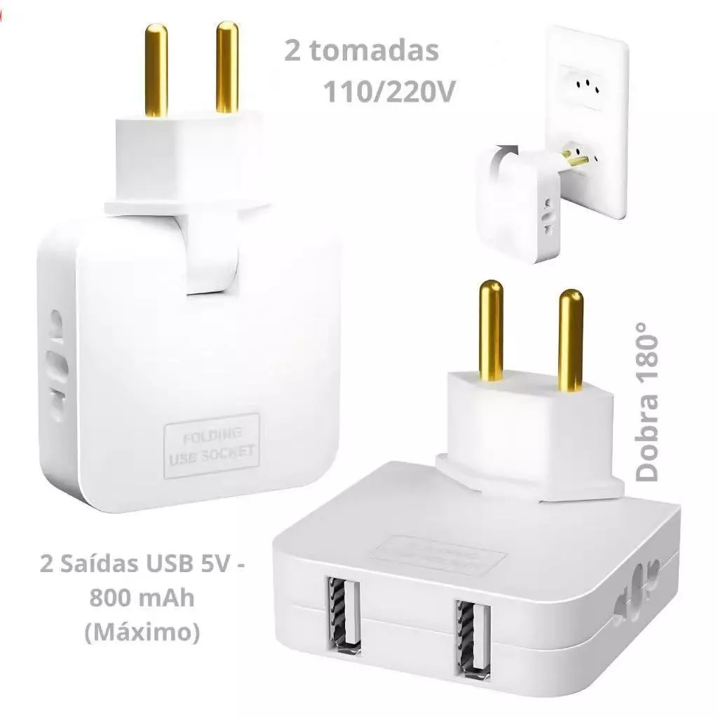 Tomada Adaptador Benjamin Dobrável 20A com 04 Entradas Duplo USB 20A