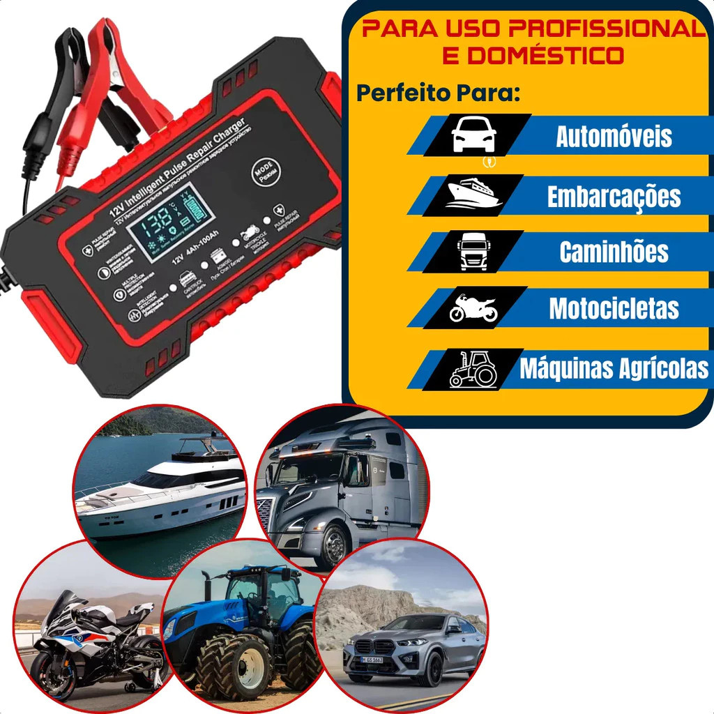 Carregador de bateria automotivo inteligente 12 V Display Digital Automático Energia Reparação Puls-envio imediato