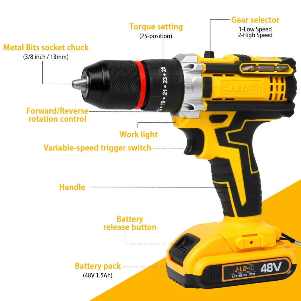 Parafusadeira Furadeira 48V 2 Baterias Com Maleta e Acessórios Completo