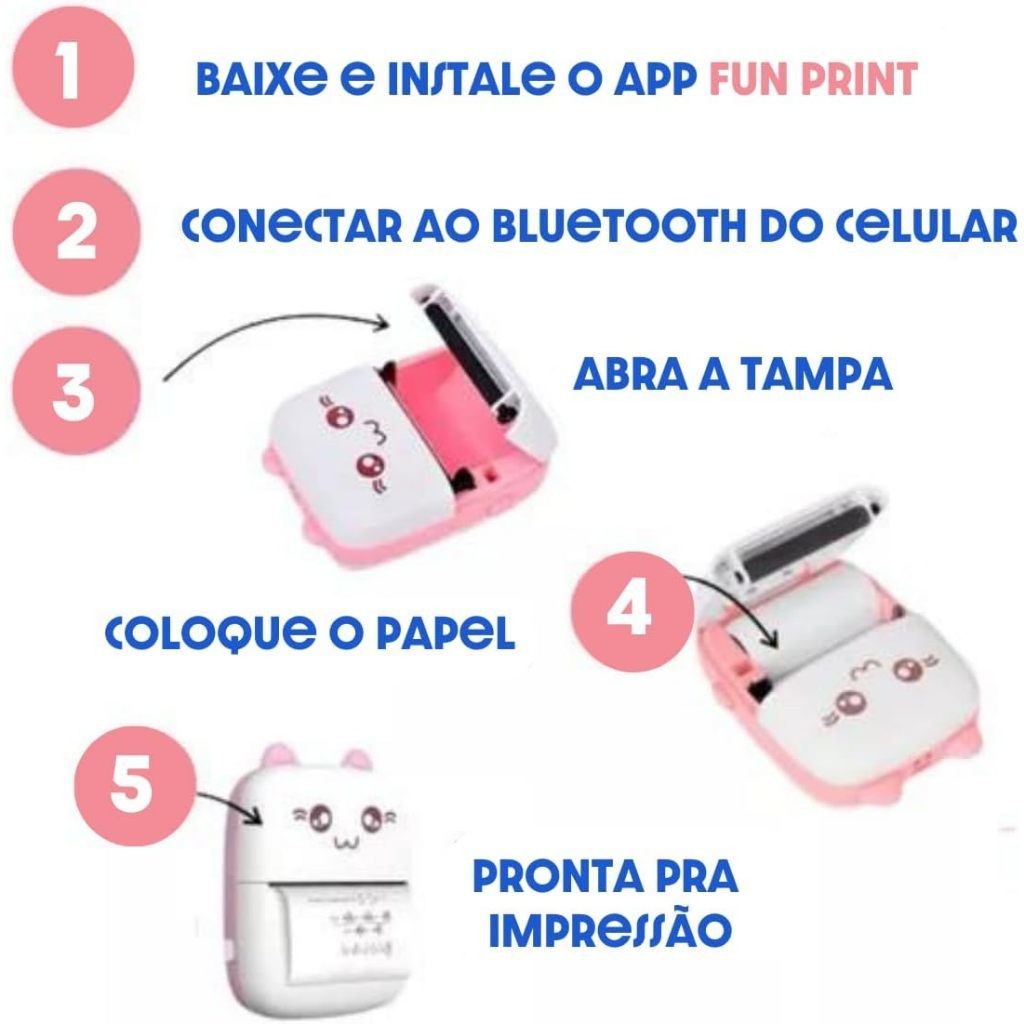 Mini Impressora Térmica Portátil De Bolso Impressão Sem Fio Fotos Notas Bluetooth Para Android Ios FLUX