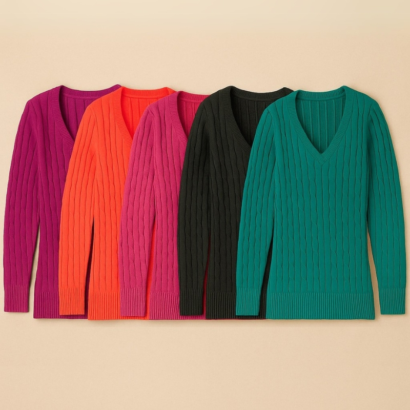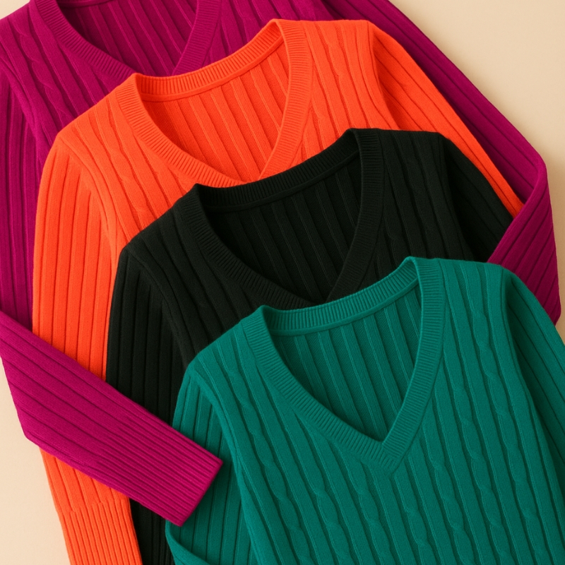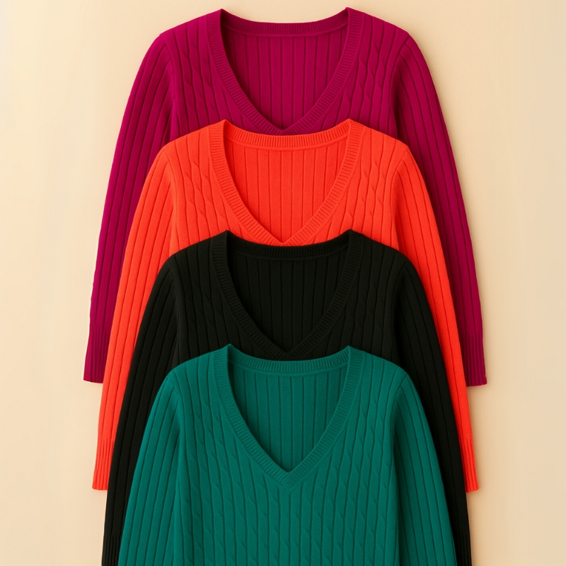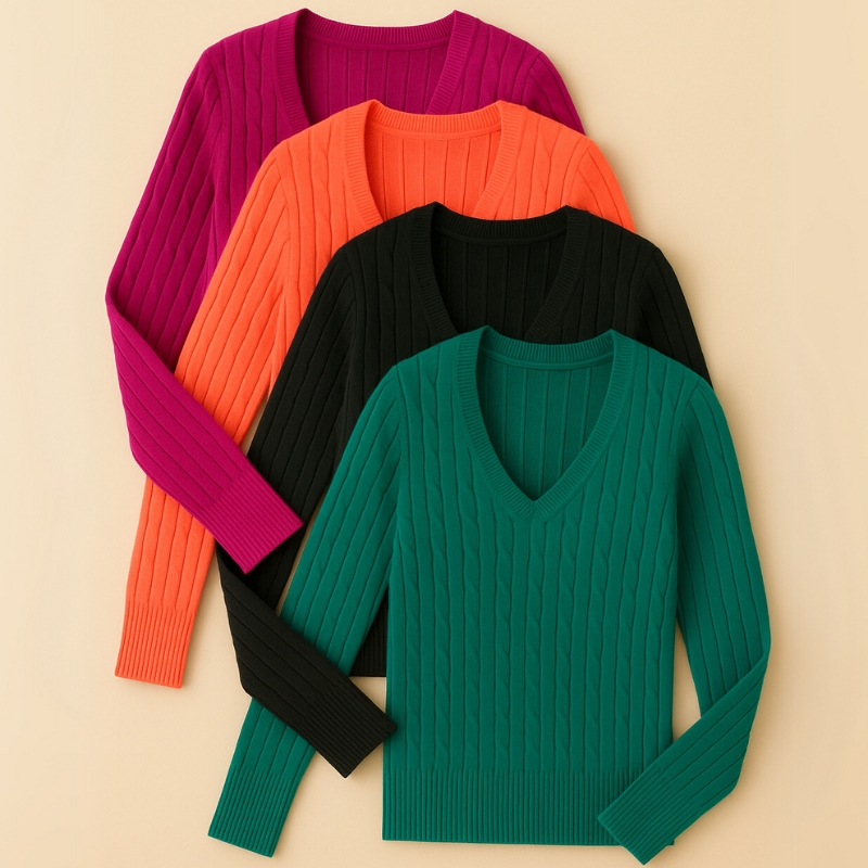 Kit 3 Blusa Gola V Canelada Fio Trançadinha Manga Longa Tricot Tricô Feminina