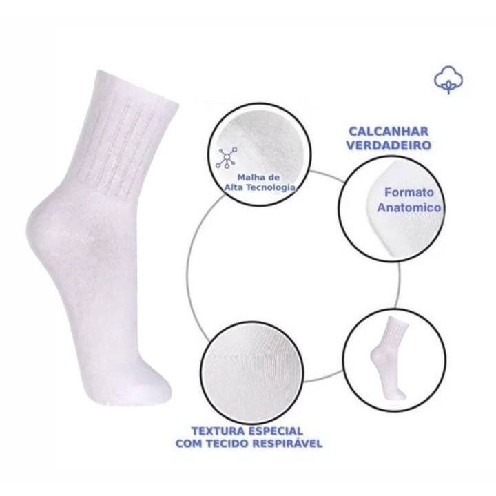 6 e 12 Pares Meias Cano Alto Algodão Unissex 35 ao 46