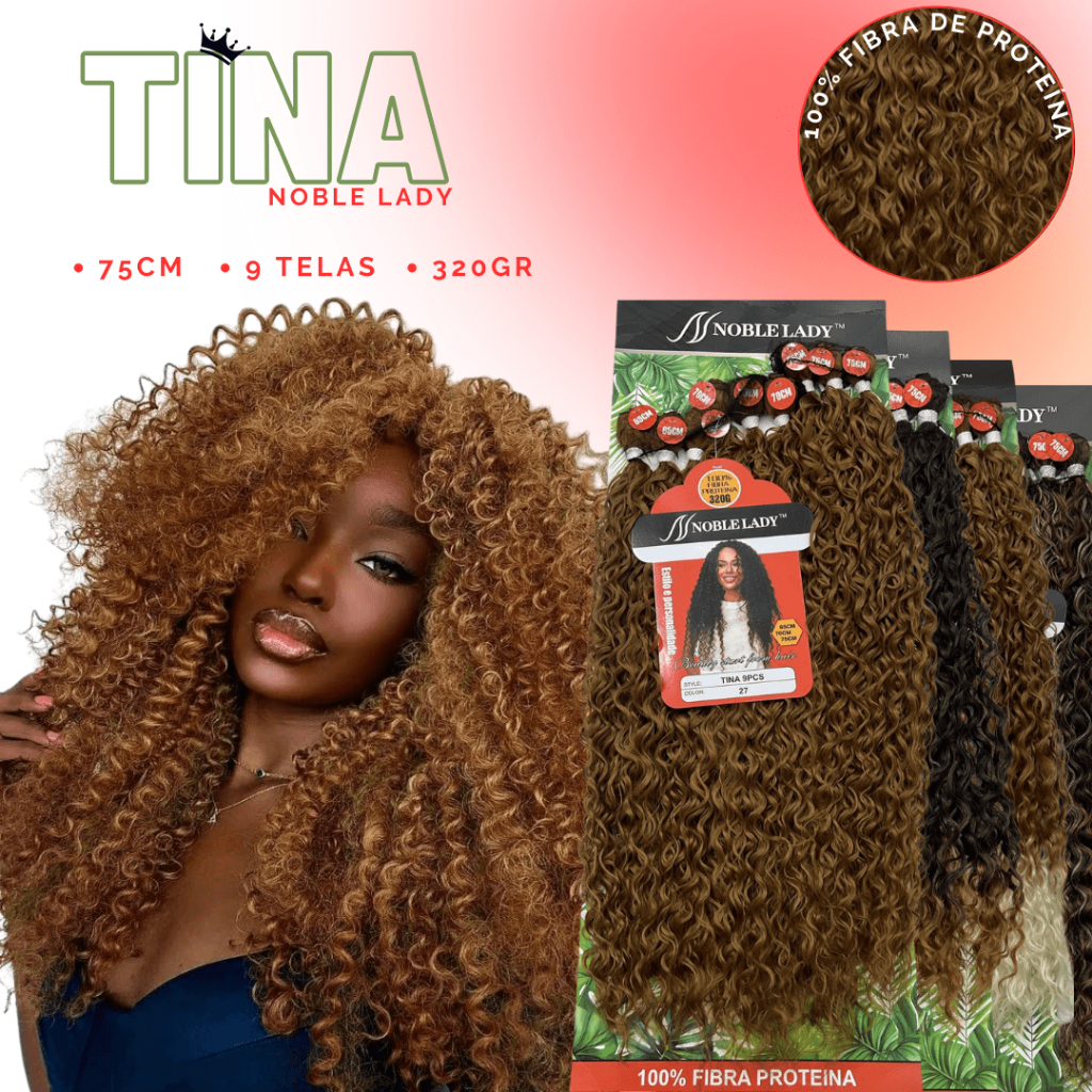 Cabelo Cacheado Mega Hair 9 telas Tina 75cm Noble Lady – 320g Fibra de Proteína Entrelace
