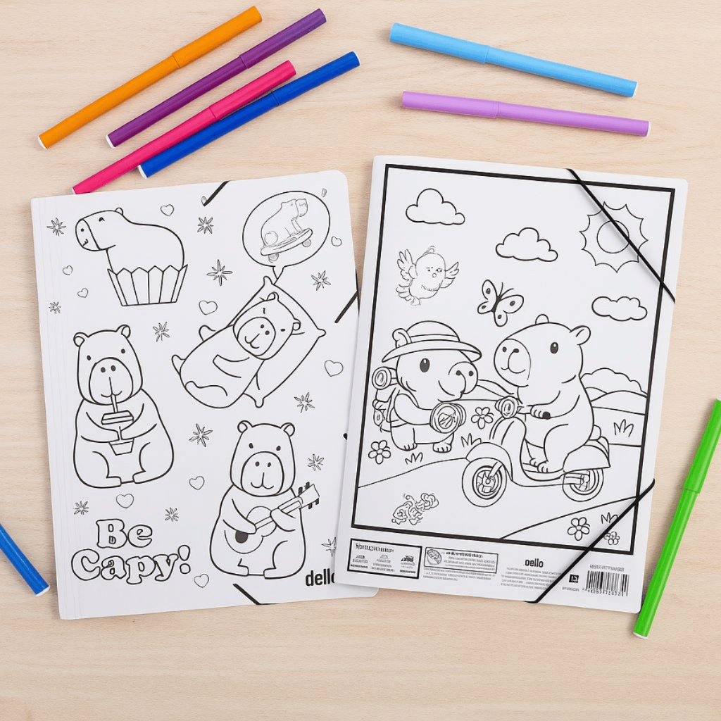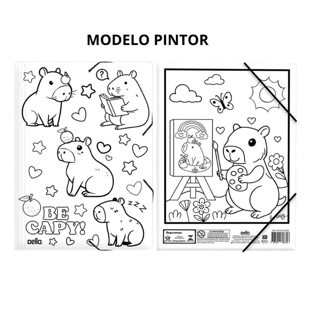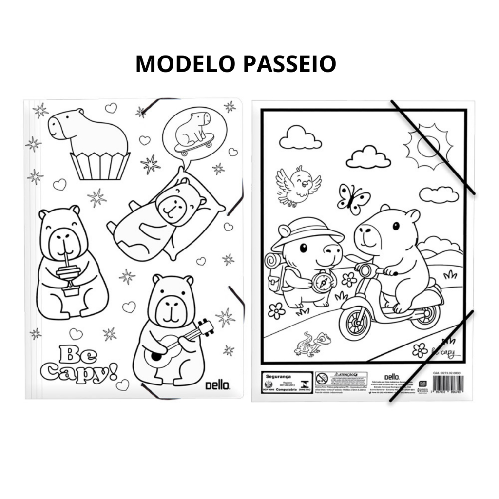Pasta Escolar Aba Elástico A4 Capivara para Colorir