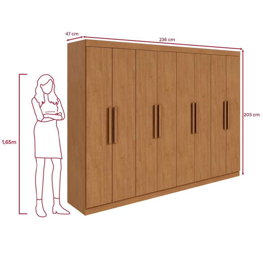 Guarda-roupa Casal Easy Slim 8 Portas Amendoa Clean