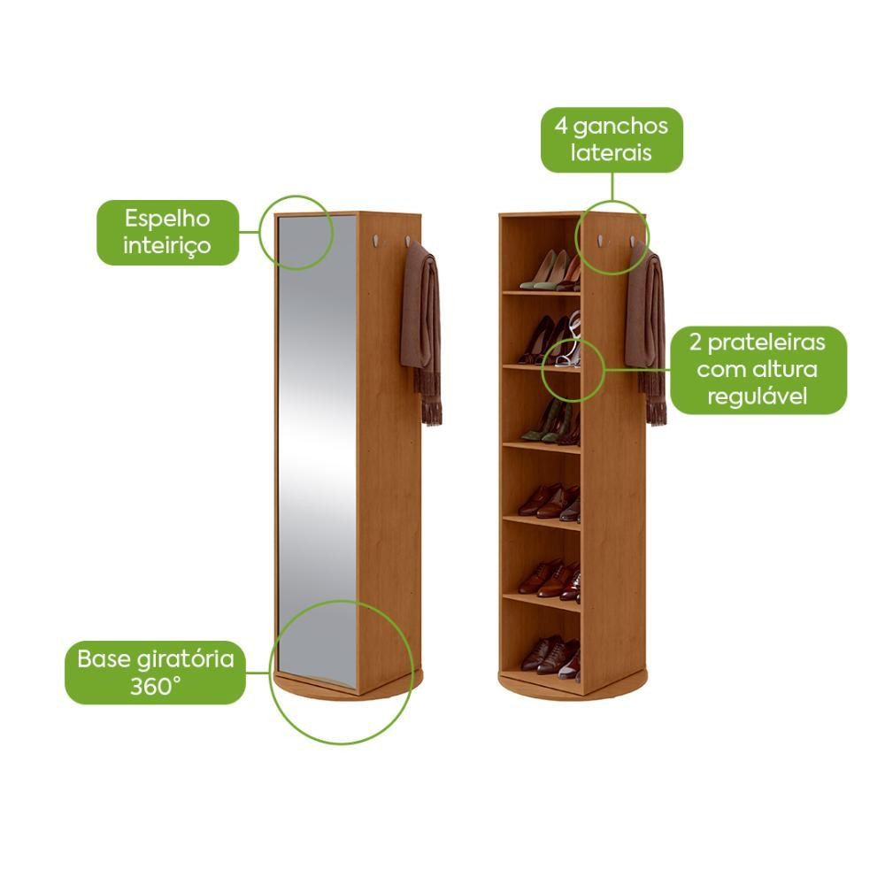 Sapateira Giratoria Esthela Com Espelho Amendoa Clean Lopas